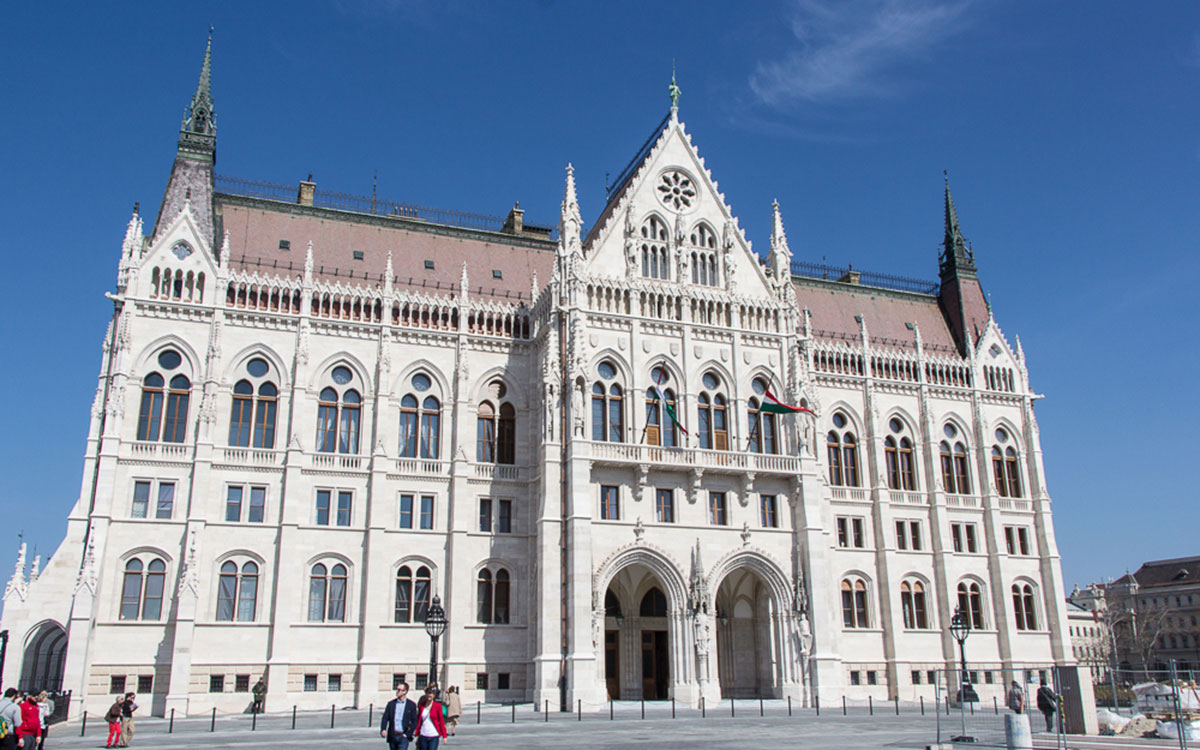 Über den Freiheitsplatz an dem sich nicht nur die Amerikanische Botschaft sondern auch das alte Börsengebäude, die Ungarische Nationalbank und das letzte verbliebene sowjetische Denkmal steht gelangst du jetzt zum Parlamentsgebäude. Das Gebäude ist 268 m lang, besitzt eine 96 m hohe Kuppel und liegt direkt an der Donau. Der Palace of Westminster diente hier als Vorbild. Die Ähnlichkeit ist sehr gut erkennbar.