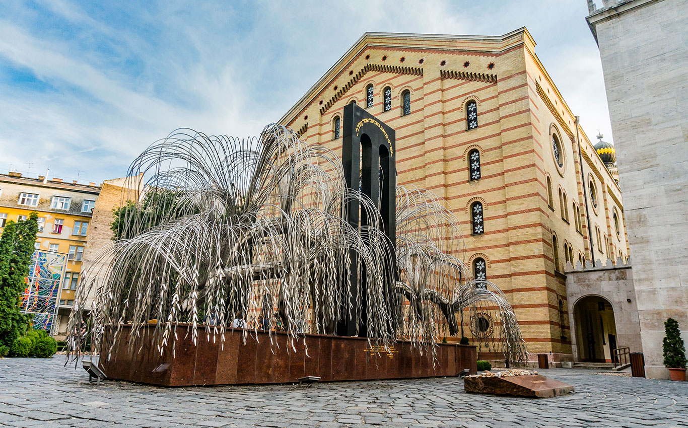 In einem der Seitenflügel befindet sich das Jüdische Museum. Ein Grund für mich nochmals nach Budapest zu kommen, denn einen Besuch habe ich leider nicht mehr geschafft. Im Innenhof befindet sich das Holocaust-Denkmal: Eine Skulptur, die eine Trauerweide mit Silber schimmernden Blättern darstellt, auf deren die Namen der Opfer stehen.