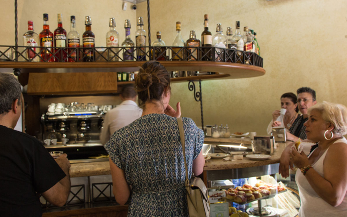Dieses pulsierende Café und Konditorei eröffnete im Jahr 1934 und serviert seitdem süße Leckereien. Wir bekommen ein für Rom typisches Cornetto und Tiramisu in einer dekorativen Schale aus Schokolade serviert.