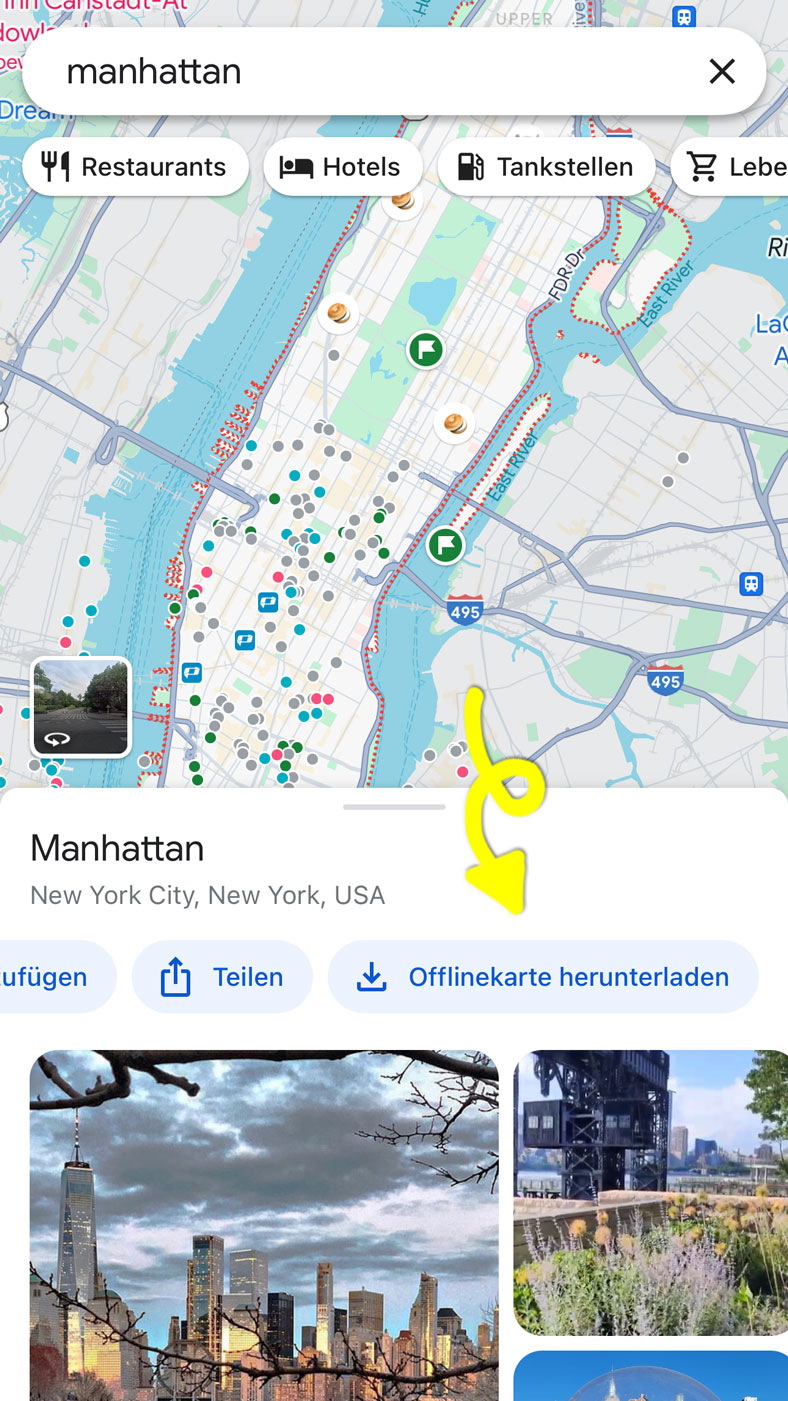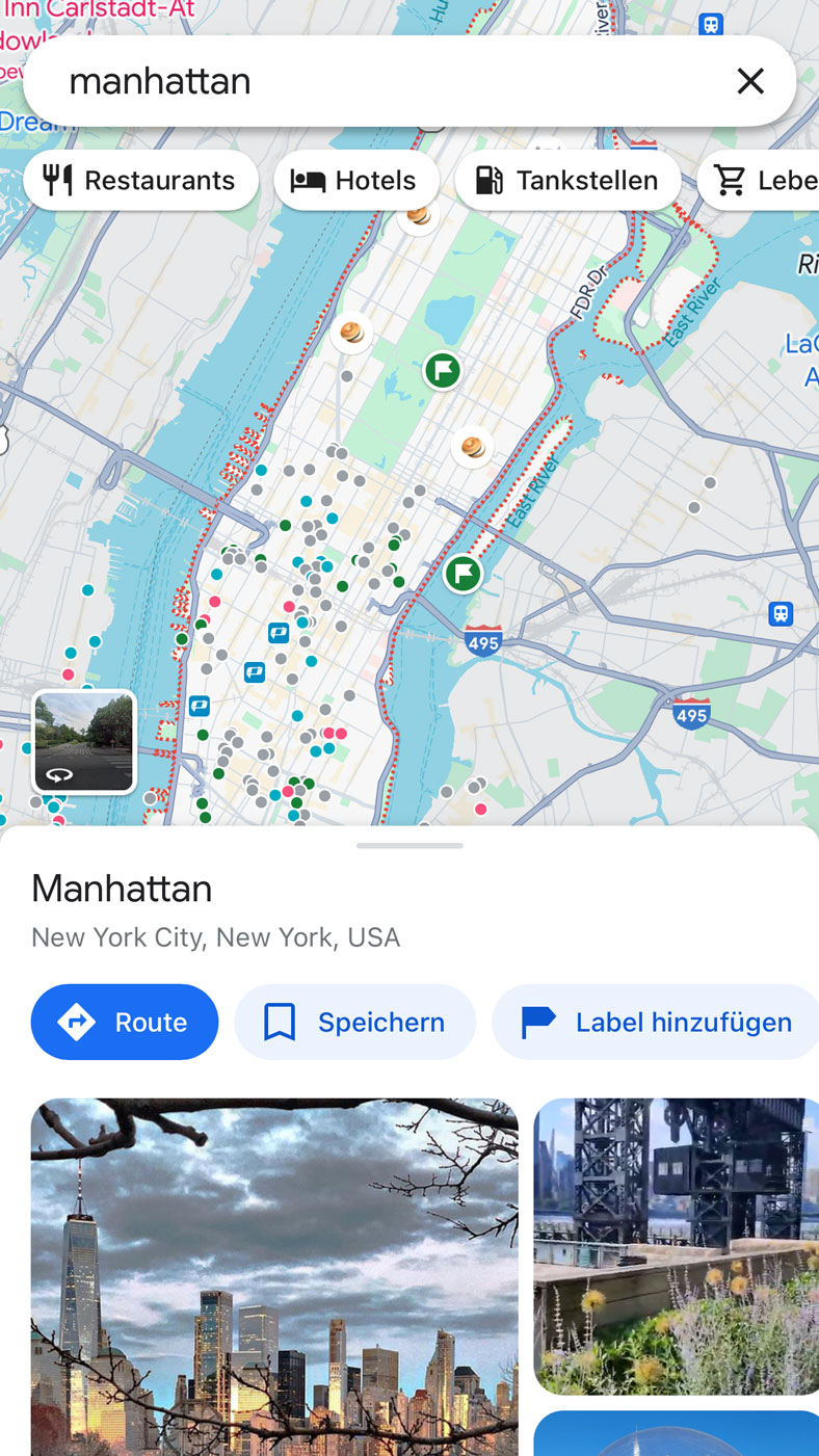 - Alternativ: Suche nach der Region, Land oder Stadt, beispielsweise "Manhattan".