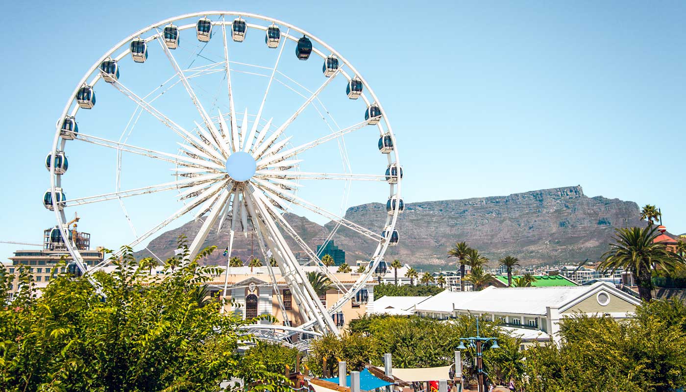 Das Riesenrad, welches man von der Waterfront kennt, gibt es nicht mehr. The Cape Wheel steht jetzt direkt am Wasser und war erst nur temporär. Jetzt als feste Installation und direkt am Meer. Wenn du etwas besonderes möchtest, kannst du nach Vorbuchung beim Kassenhaus einen Picknickkorb abholen und die Fahrt (normal ca. 15 Minuten) auf 30 Minuten verlängern lassen. Zusätzlich wird ein Tisch in die Kabine gestellt und du kannst dein Picknick mit Aussicht (es geht auf 40 Meter höhe) genießen.