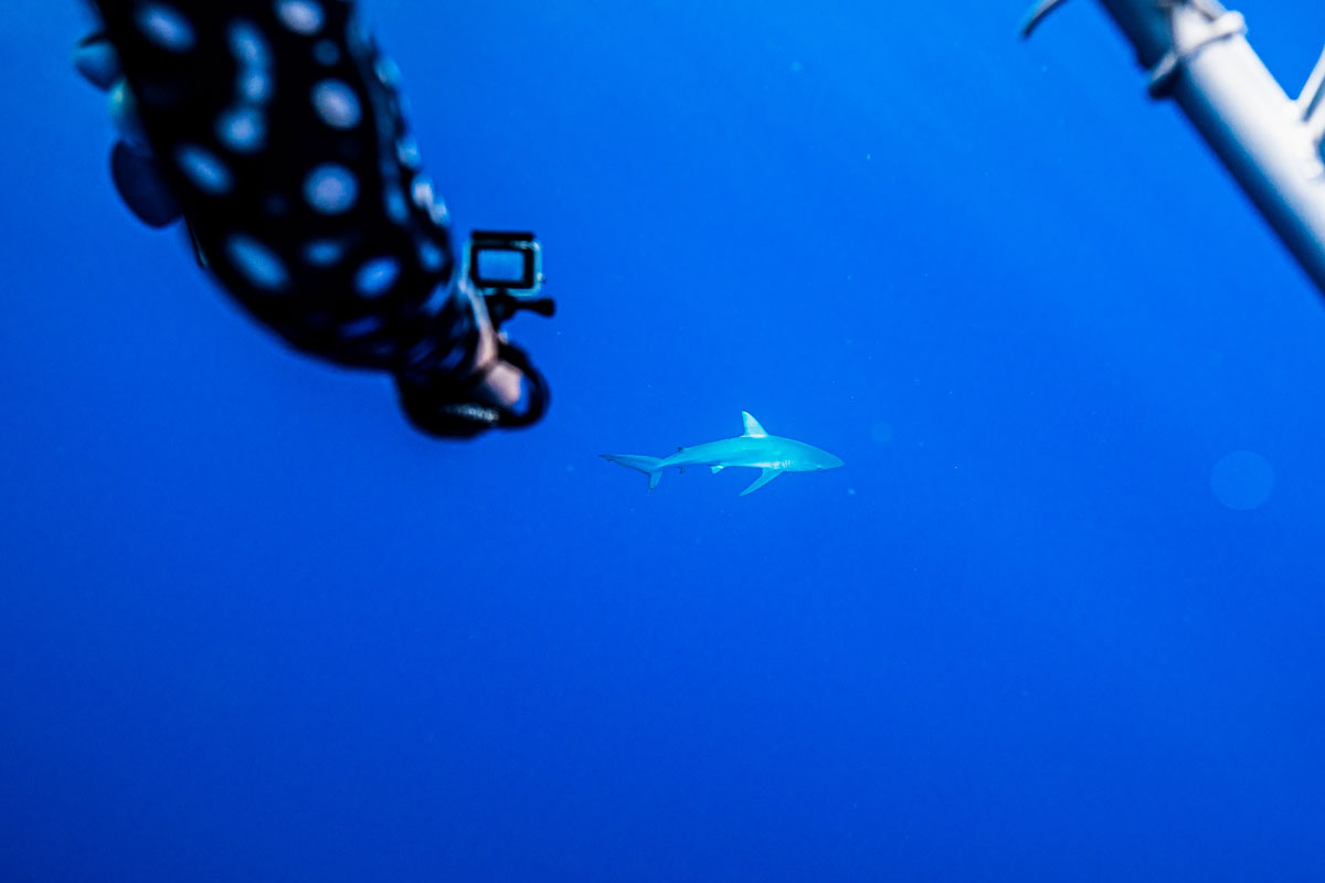 Das Wrack kannst du bei gutem Wetter unter dir sehr gut sehen. Immer wieder tritt Öl aus.