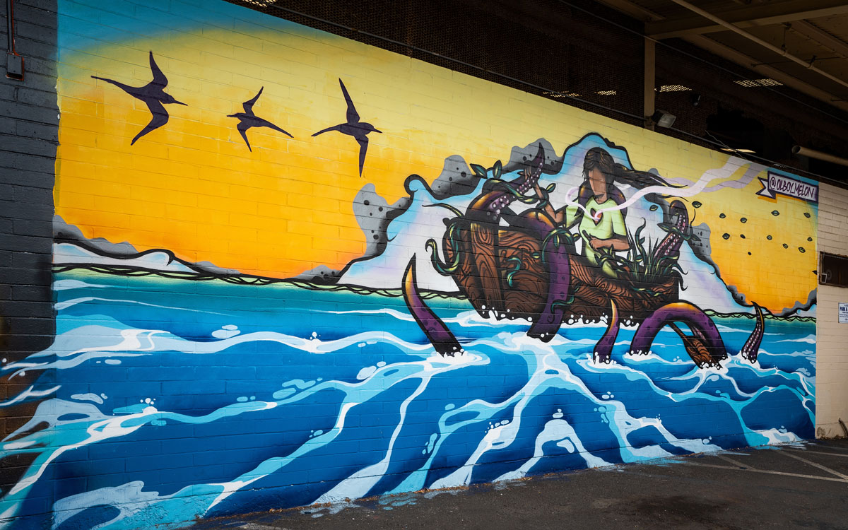 Die schönsten Kunstwerke findest du rund um die Ecken: Cooke und Auahi Street, Ala Moana Boulevard und Ward Avenue, Coral und Pohukaina Street, Koula Street, Lana Lane. Schau auch in die kleinen Gassen und Hinterhöfe.