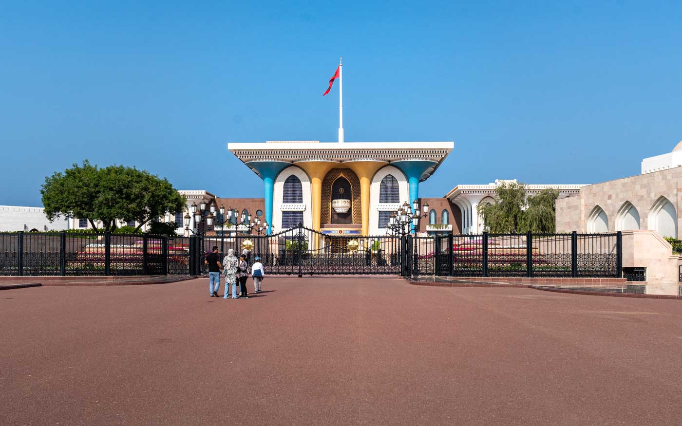 Der offizielle und repräsentative Palast Qaṣr al-ʿalam des Sultans (oft nur Al Alam Sultanspalast oder Flaggen-Palast genannt) ist zumindest von außen für jeden zugänglich. Tolle Architektur, umgeben von üppig grünen Gärten. Die Anlage wurde bereits 1972 erbaut und ist die offizielle Residenz des Sultans vom Oman. Hier werden hohe Staatsgäste empfangen. Wenn die Flagge gehisst ist (wie im Bild), ist der Sultan Qaboos vor Ort.