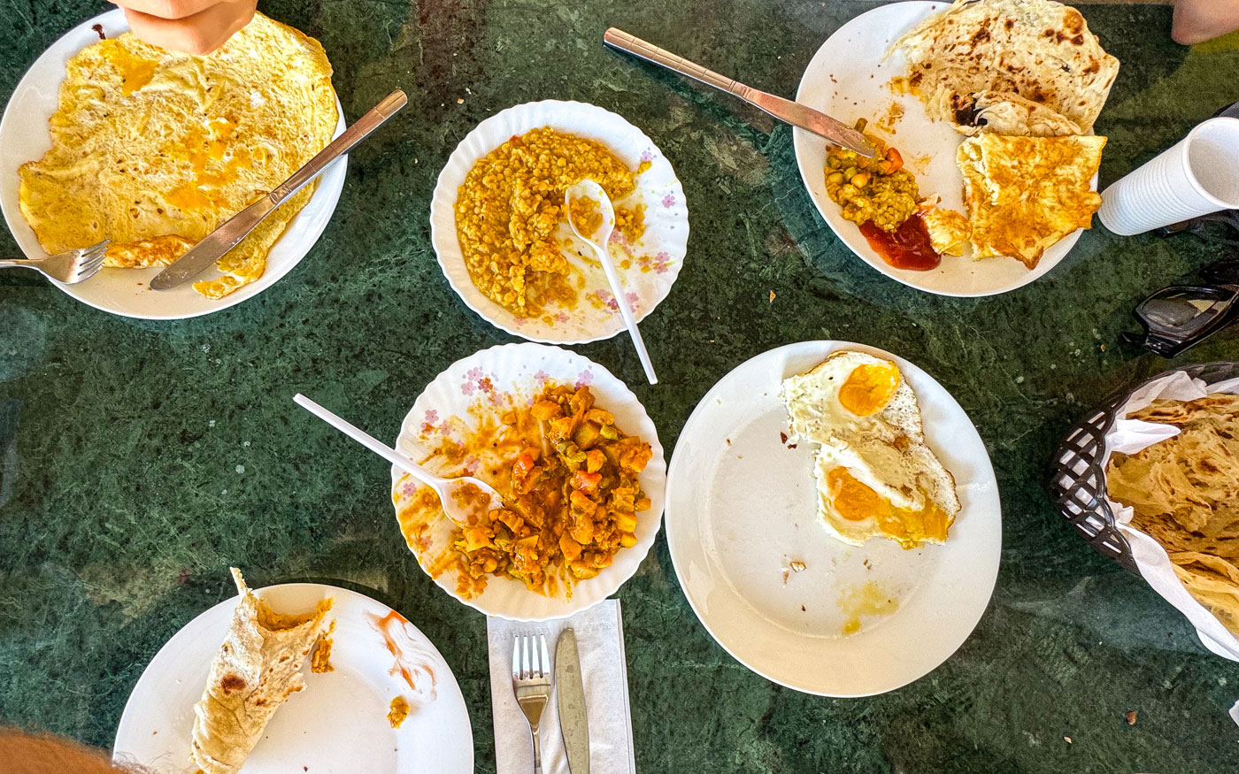Das Buffet ist riesig. Das Angebot sowohl morgens als auch am Abend deckte nicht nur die omanische Küche, sondern auch die westliche und asiatische Küche ab. Das fing schon mal gut an, denn jeder aß mehr, als er eigentlich zum Sattwerden hätte essen müssen.