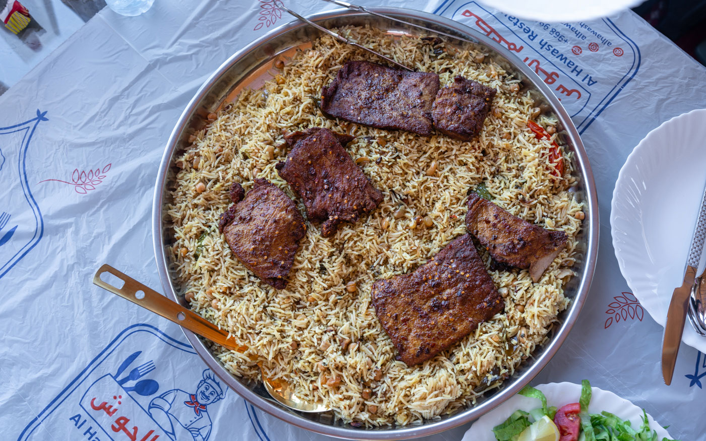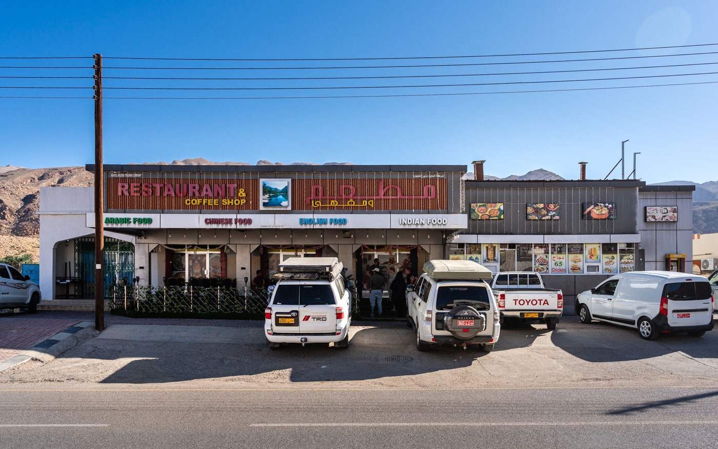 Der Ausgangsort zum Jebal Shams ist der Ort Al Hamra. Die Stadt liegt ungefähr eine Stunde von Nizwa entfernt. Hier kann ich dir ein Mittagessen im jemenitischen Restaurant "Reem Al Yamen Restaurants & kitchens" ans Herz legen. Ideal, um vor der Weiterfahrt nochmals eine Pause einzulegen. Ab hier ist die Fahrt zum Jabal Shams und Wadi Nakhur ausgeschildert.
