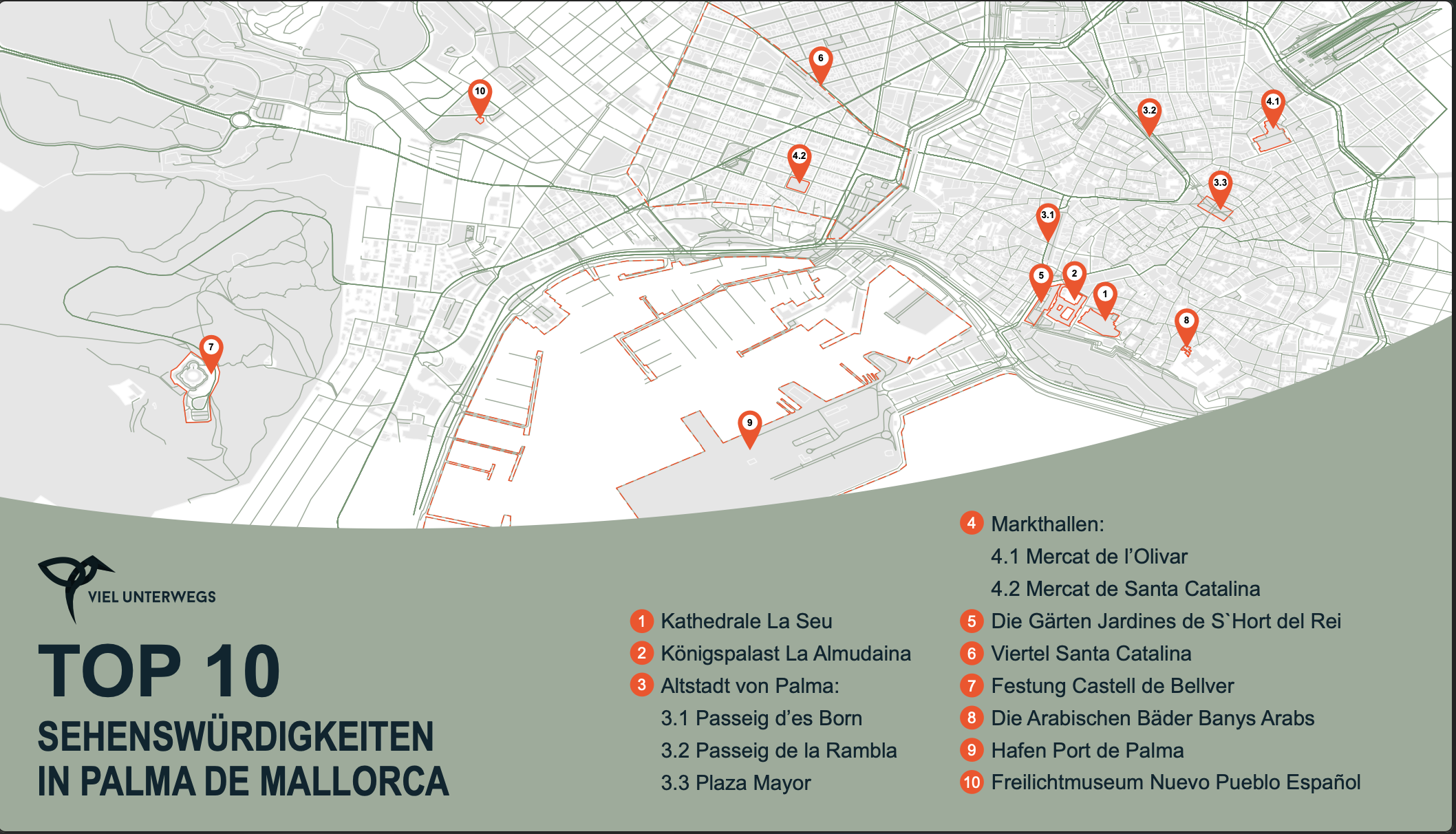 Diese Palma-Karte enthält fast 100 Orte, darunter: