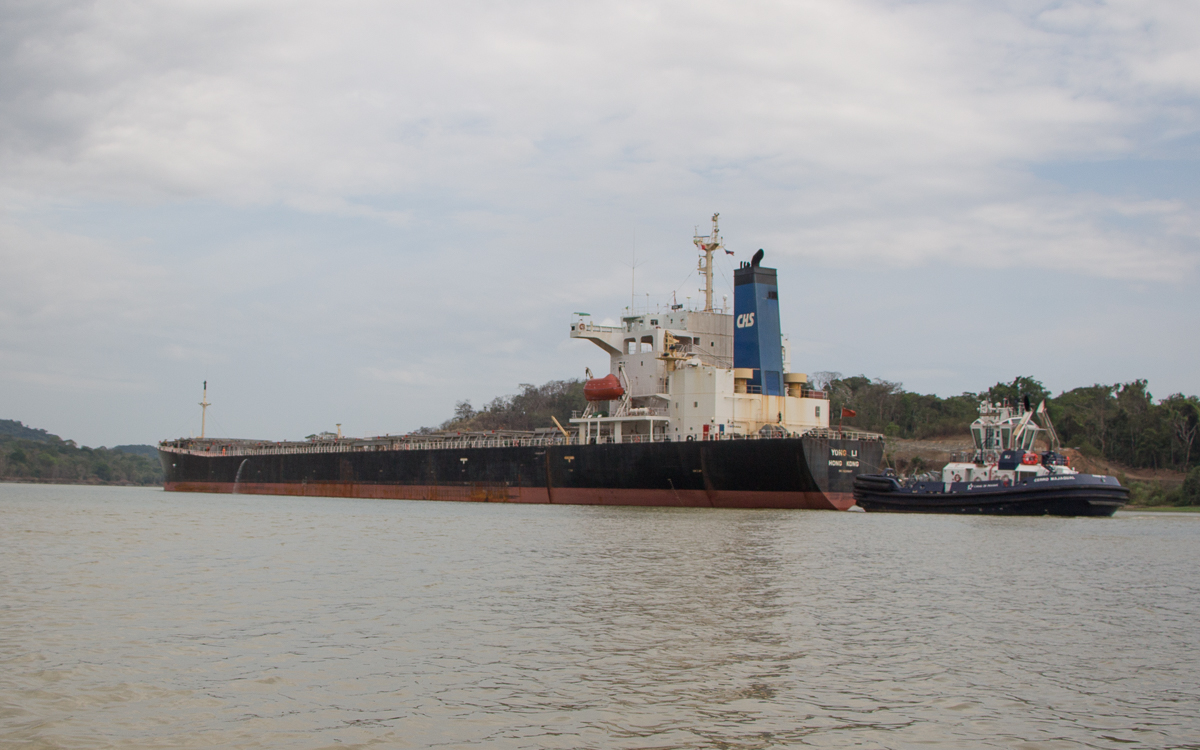 Unternimm eine Bootstour auf dem Panamakanal und fahre an den imposanten Containerschiffen vorbei.