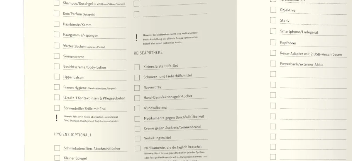 Natürlich haben wir auch ausführliche Listen für unser Reisegepäck erstellt. Je Reise packen wir unterschiedliche Dinge ein. Sieh dir unbedingt unsere Packliste zum Sommerurlaub, meine Packliste für Städtereise, die Checkliste für Urlaub mit Baby oder die Packliste für Roadtrips an. Für Wanderungen haben wir hier die Packliste für den Kilimandscharo