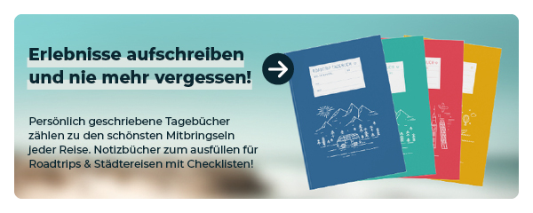 Halte deine Erinnerungen auf Reisen mithilfe meiner gestalteten Reisetagebücher fest. Für mich zählt das persönliche Reisetagebuch zu den schönsten Mitbringseln von Reisen.
