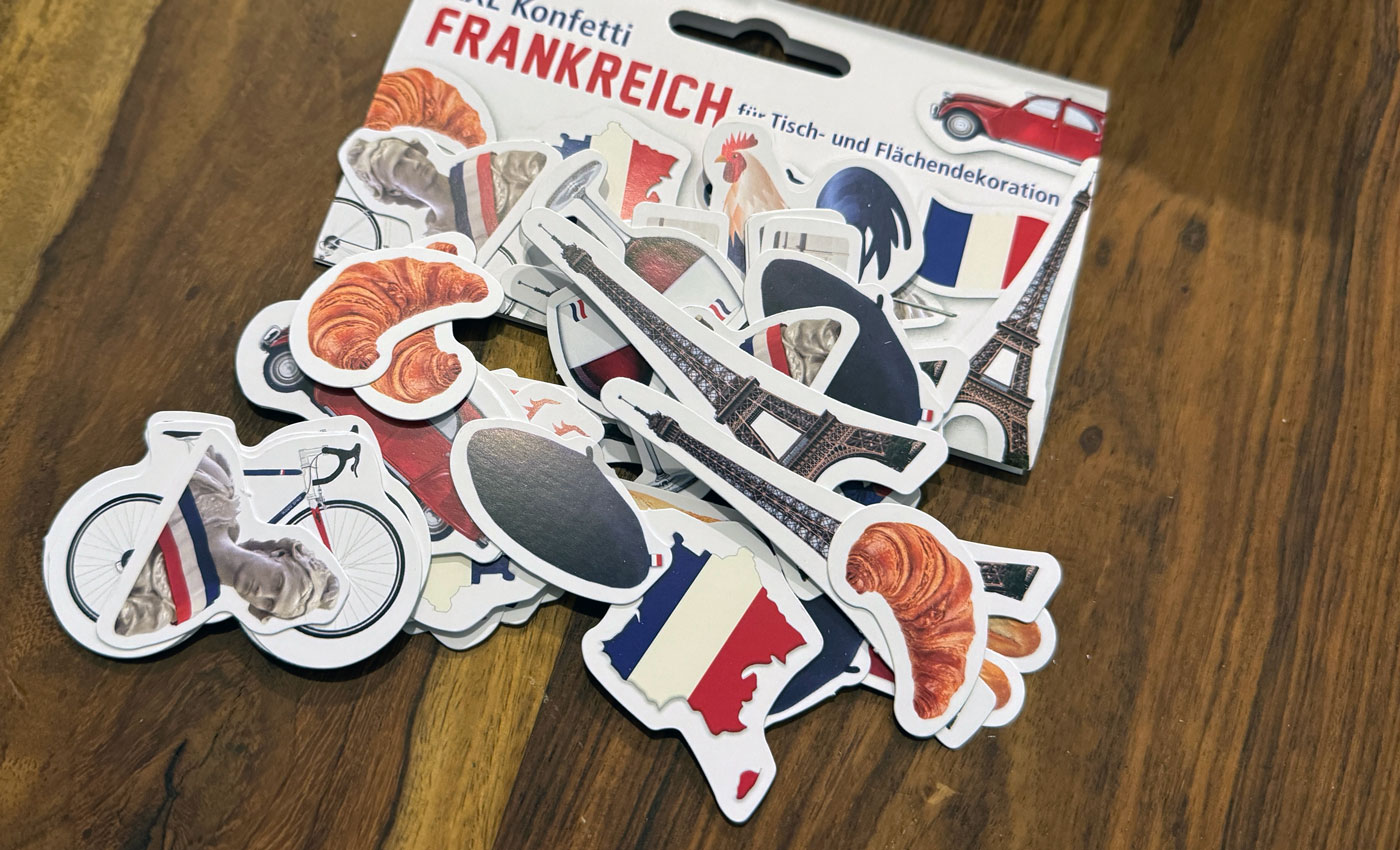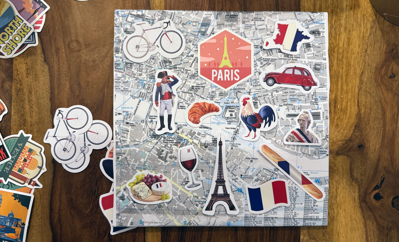 Für Paris gibt es dieses tolle Stickerset. Dazu könntest du den Koffer in den Farben der französischen Flagge bemalen und typische Dinge wie die Eiffelturm, Baguettes oder die Ente draufmalen (oder ausschneiden und aufkleben).