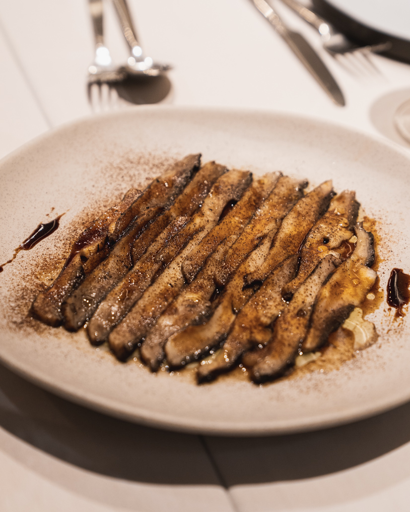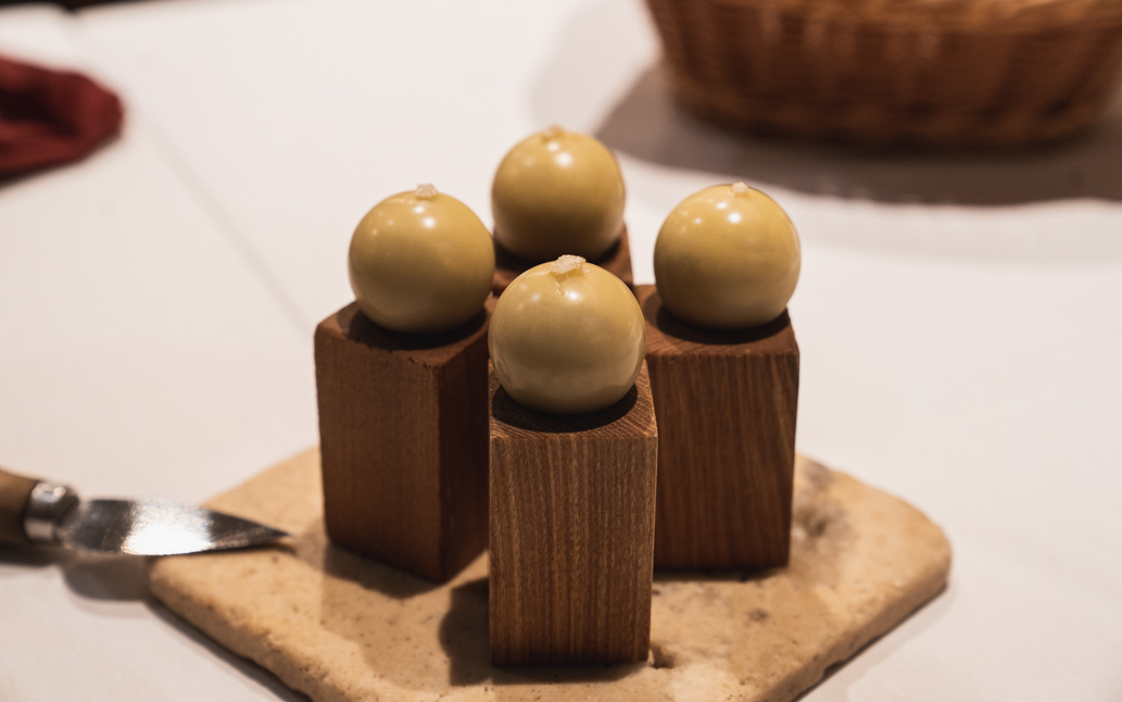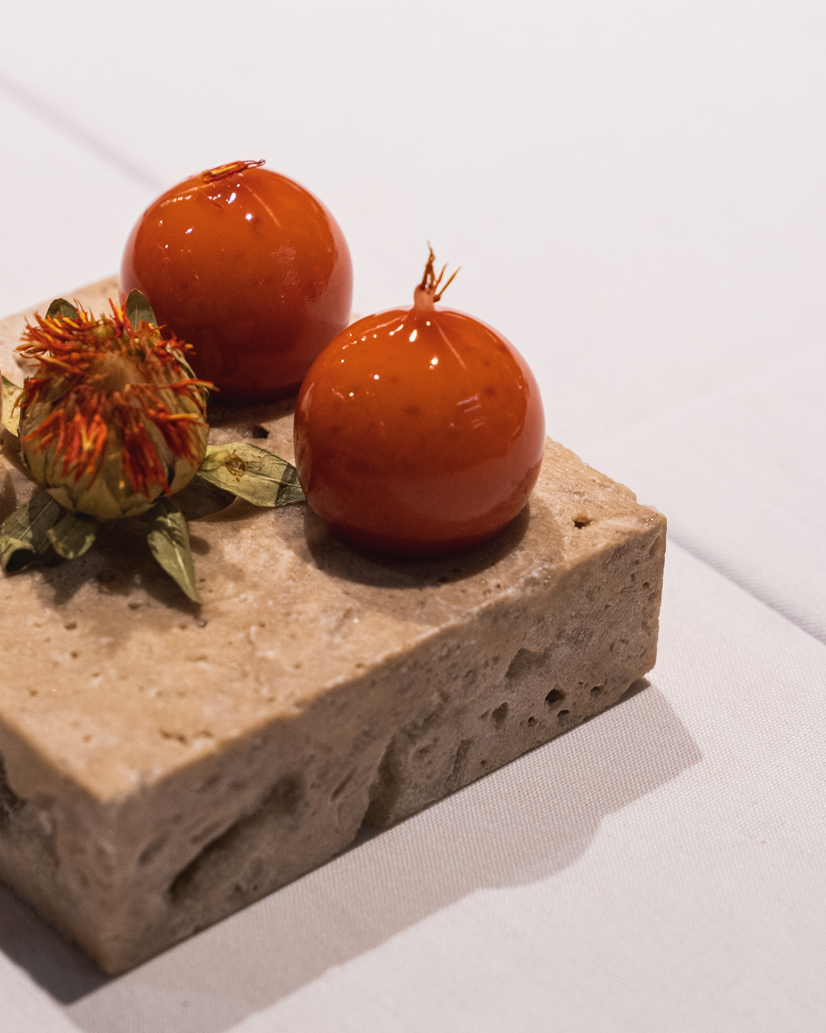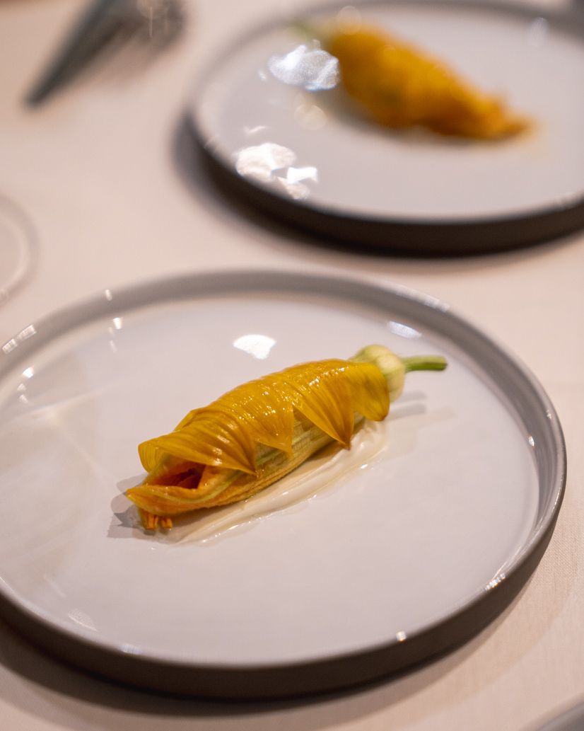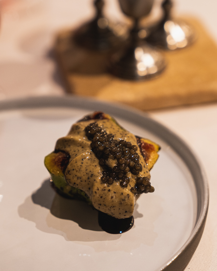 In zehn Gängen bringt der junge Chefkoch Hayk Shakaryan eine Werkschau armenischer Produkte auf den Teller, darunter Zucchiniblüten gefüllt mit Erbsen und grünem Paprika-Hummus, Kirschtomaten mit fermentiertem Tomatensaft, gegrillte Waldpilze mit geröstetem Knoblauchpüree sowie gegrillte Feigen mit – ungewöhnlich! – Beluga-Kaviar. Das alles noch zu humanen Preisen, wohlgemerkt.