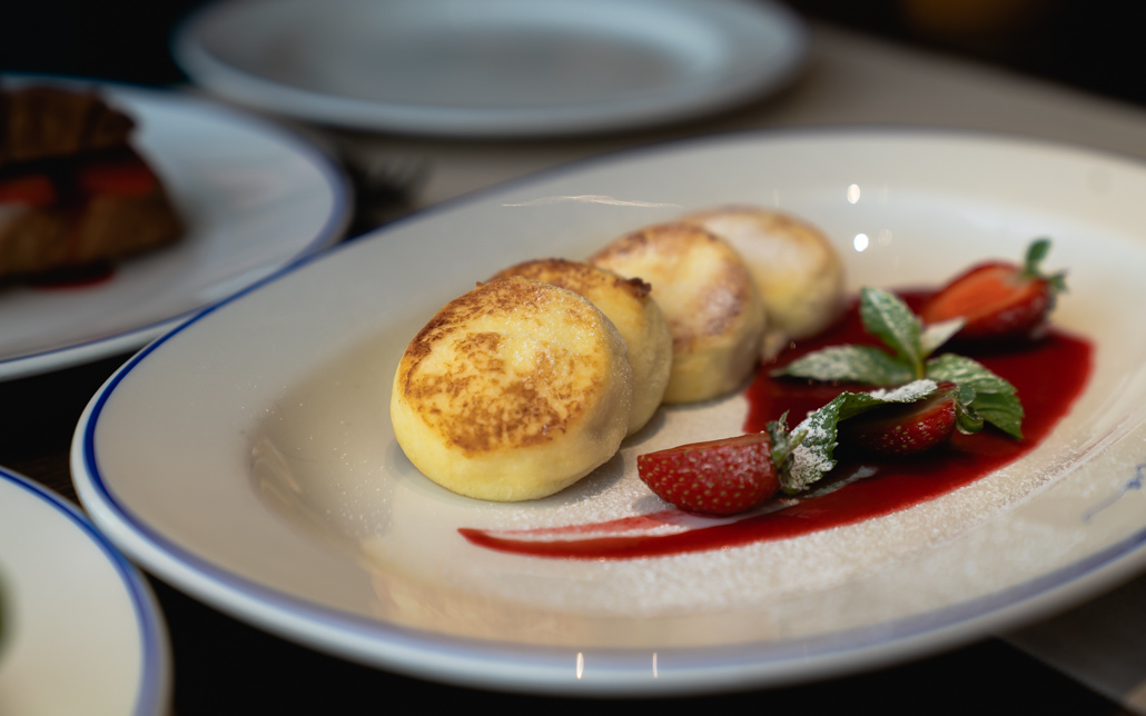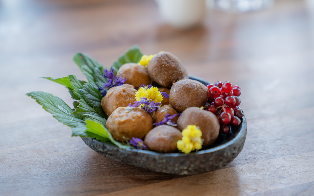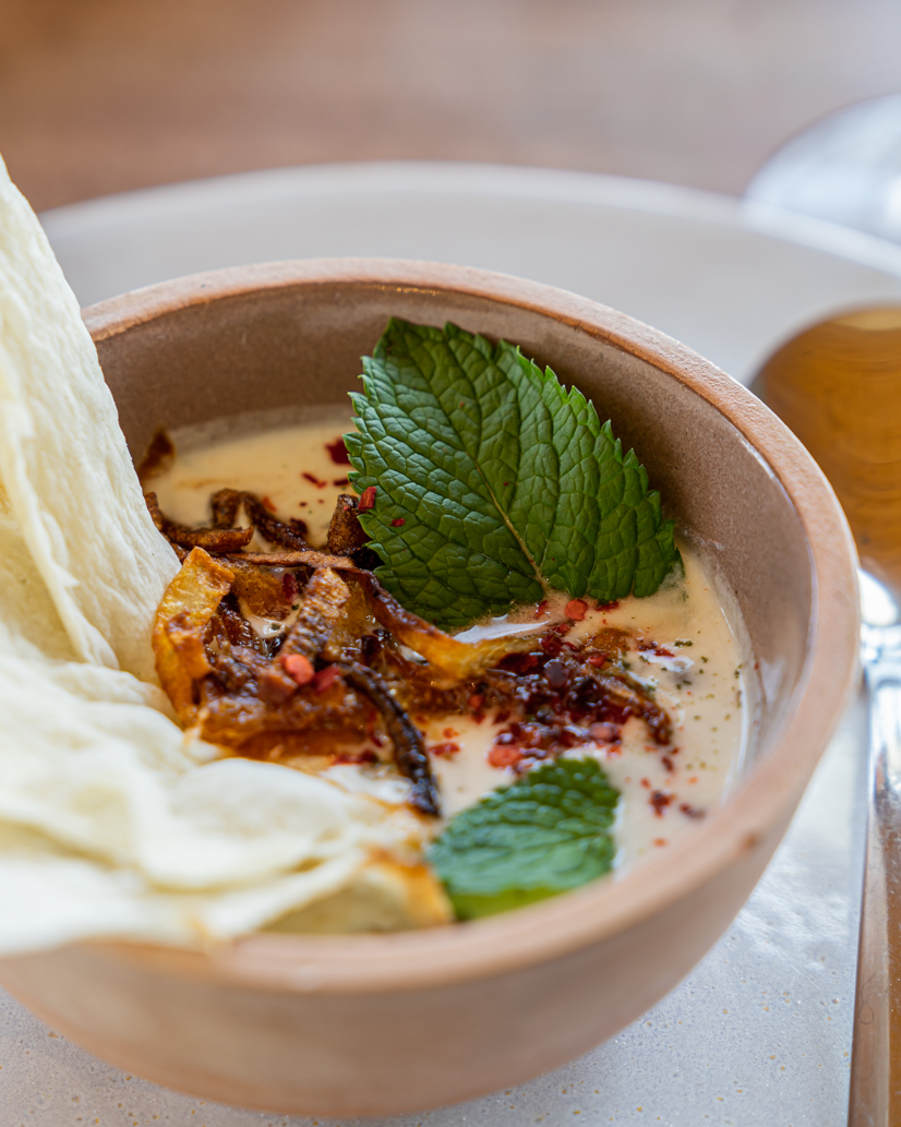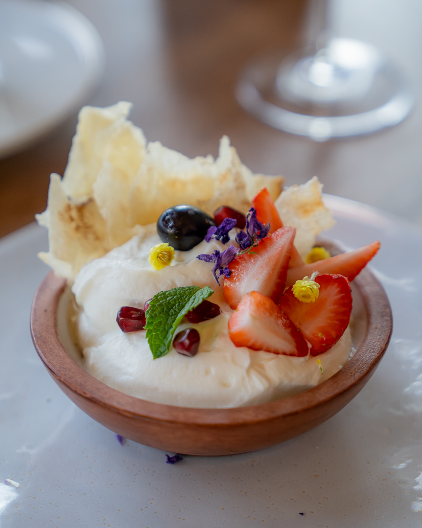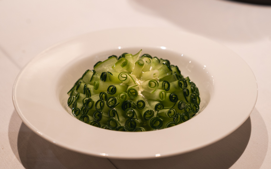 In zehn Gängen bringt der junge Chefkoch Hayk Shakaryan eine Werkschau armenischer Produkte auf den Teller, darunter Zucchiniblüten gefüllt mit Erbsen und grünem Paprika-Hummus, Kirschtomaten mit fermentiertem Tomatensaft, gegrillte Waldpilze mit geröstetem Knoblauchpüree sowie gegrillte Feigen mit – ungewöhnlich! – Beluga-Kaviar. Das alles noch zu humanen Preisen, wohlgemerkt.