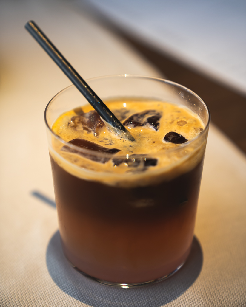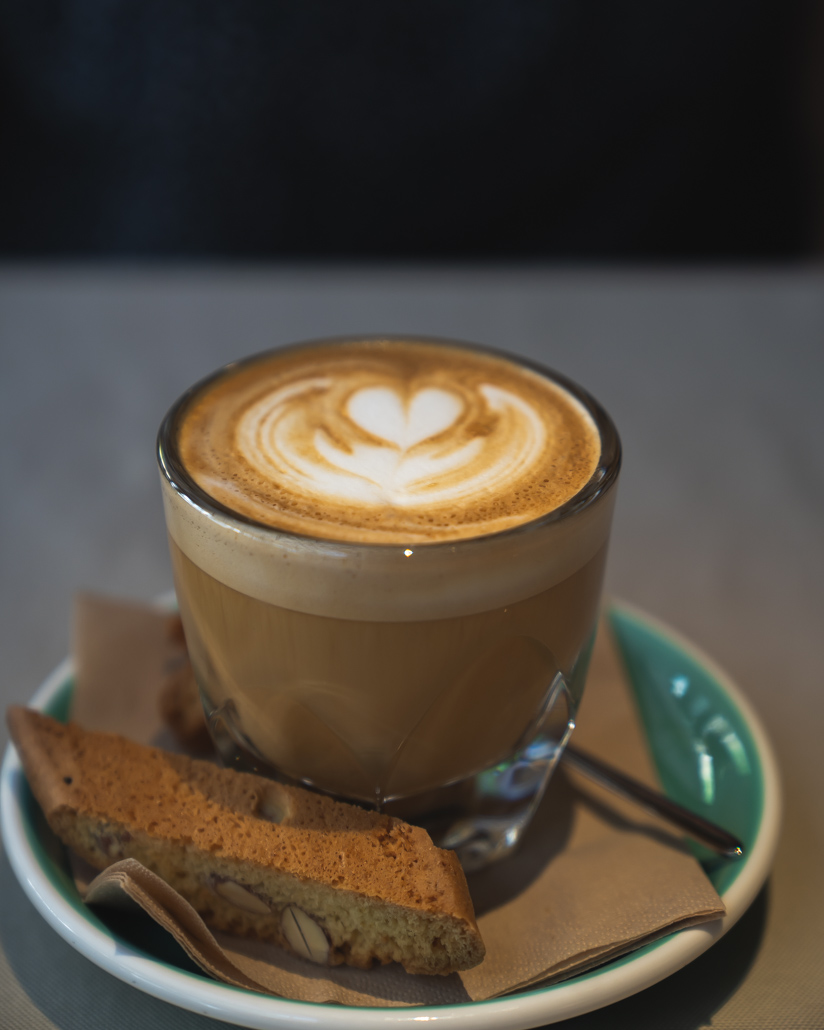 Tipp: Steht nicht auf der Karte, aber wenn du ihn höflich bestellst, dann mixt dir die Theke einen hippen Bumble: Espresso mit Orangensaft! Chris hatte einen "Sparkle", einen doppelten Espresso mit Tonic-Water. Klingt wie Restetrinken, schmeckt aber exzellent!