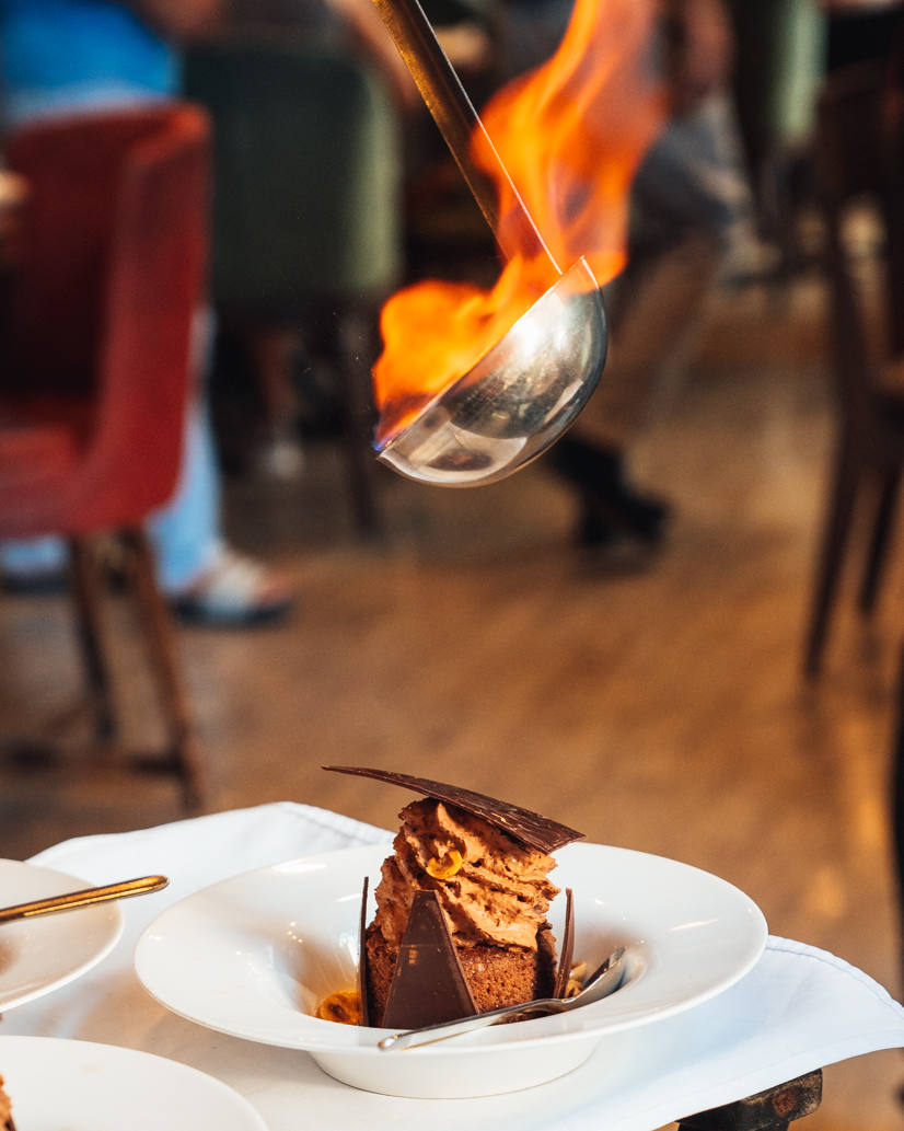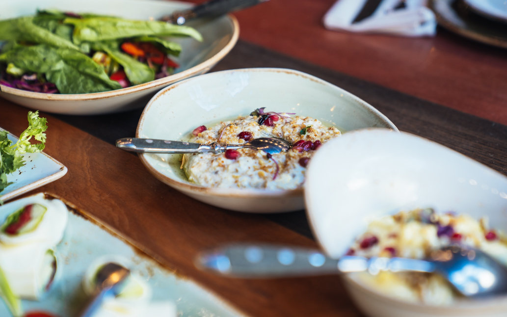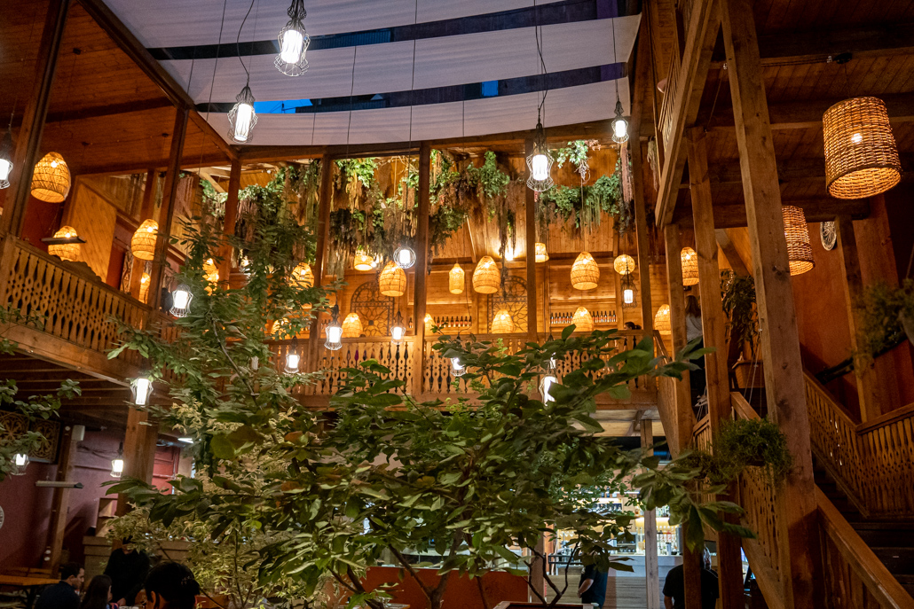 Sensationelles Hummus, heißdampfendes Lavash, im ganzen gegrillte und am Tisch tranchierte Forelle, geschmorter Paprikasalat, gekochte oder gebratene Khinkali (verführerische Suppen-Teigtaschen aus Georgien) sowie ein am Tisch mit Alkohol flambierter Schoko-Lavakuchen ... und es gibt noch immens viel mehr in der riesigen Karte zu entdecken. Tipp: Unbedingt an der offenen Küche vorbeischauen!