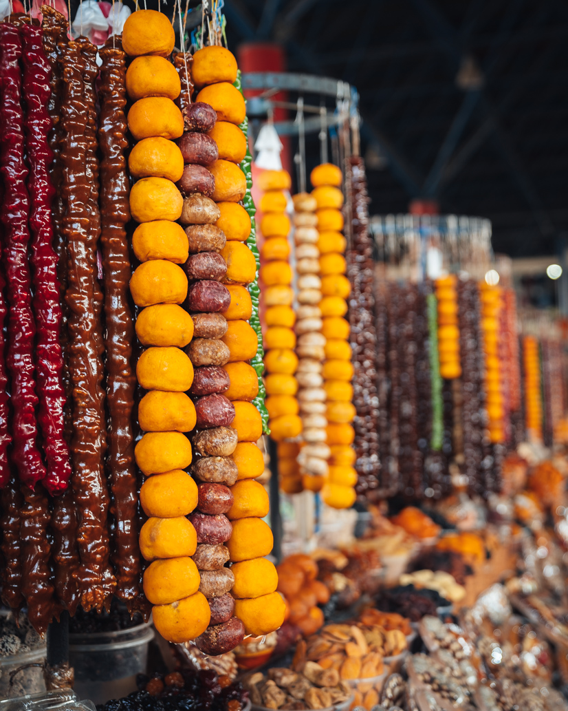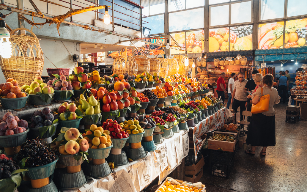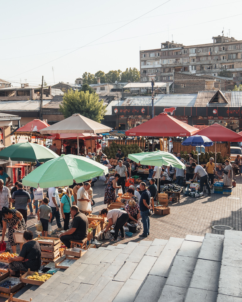 In Jerewan geht das besonders gut auf dem Gum Shuka Markt im Süden der Stadt. Hier lässt es sich gut und gerne eine Dreiviertelstunde durch die vielen Stationen zwischen Fisch, Fleisch, Käse und dem riesigen Gemüse- und Obstangebot flanieren.