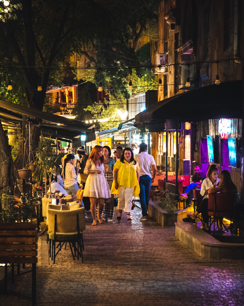 Nur wenige Gehminuten vom Vostan entfernt liegt der hippe Minas Cocktail Room, gleich neben dem "Collective", in dem du vielleicht gefrühstückt hast. Hier werden dir Cocktails auf Weltniveau gemixt, dazu moderne Kunst und lässige Musik gespielt. Hier kann man ein paar Stunden verbringen und eintauchen in das Nachtleben der Armenier. Und das kann durchaus bis in die frühen Morgenstunden gehen ...