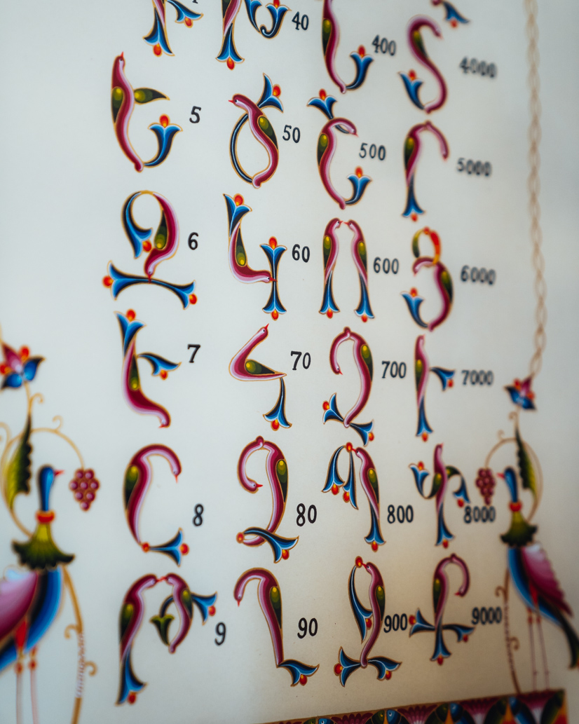 Besonders stolz sind die Armenier auf ihr Alphabet, und das nicht ohne Grund: Es gehört sowohl zu den ältesten als auch den jüngst veränderten Schriftbildern der Welt. Altarmenisch, die Sprache der ältesten erhaltenen Bibelübersetzung aus dem Jahr 404 n. Chr., war bis in das 19. Jahrhundert hinein Literatursprache und findet heute nur noch im kirchlichen Bereich Verwendung.