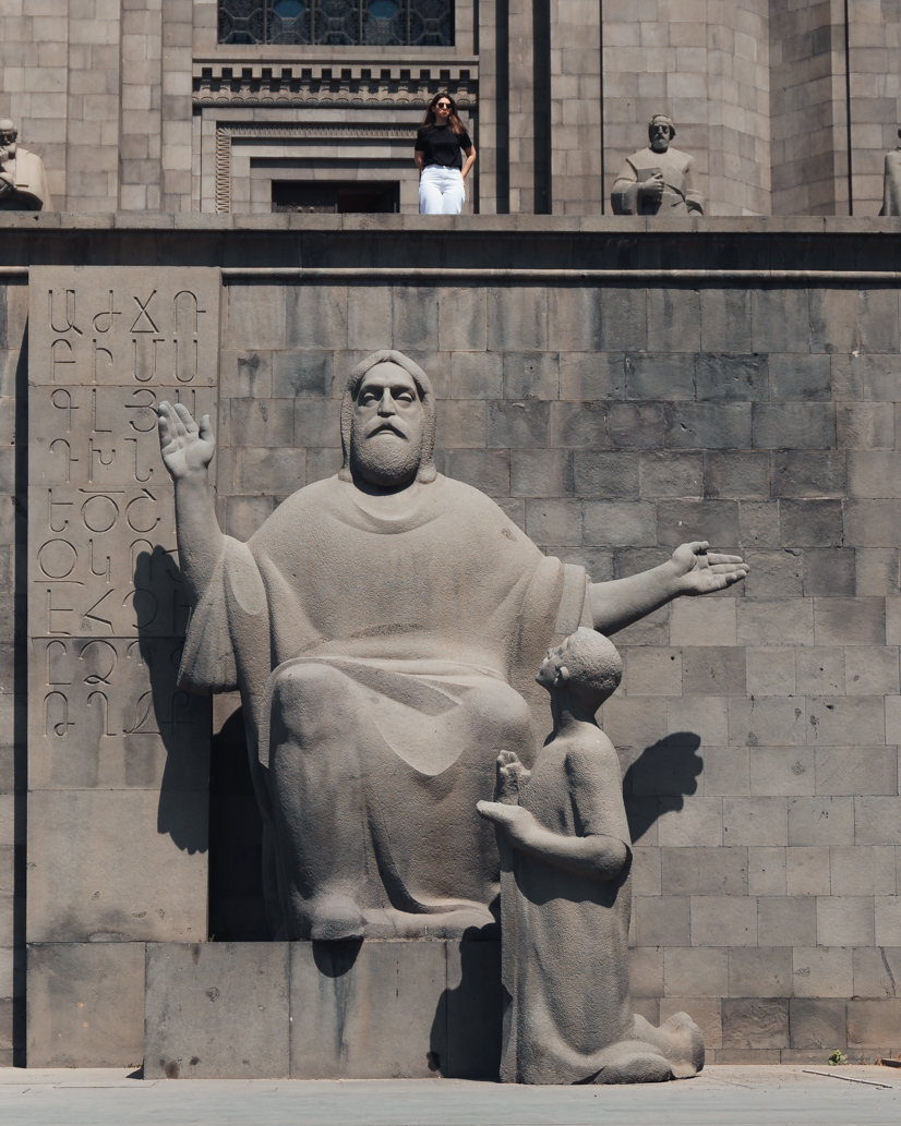 Wer mehr darüber erfahren will – und etwas Hirnarbeit sollte nach dem Mittagessen auch nötig sein! – dem sei das Matenadaran Museum unweit den Kaskaden empfohlen. Außerdem solltest du dein Ticket mitsamt Tour buchen, letztere sogar – nach Anmeldung – auf Deutsch. Das Museum ist noch dazu Armeniens größtes Handschriftenarchiv: Im Ausstellungsbereich sind lediglich 5 % der insgesamt 20.000 Handschriften ausgestellt, der Rest lagert gut gesichert und geschützt im Keller.