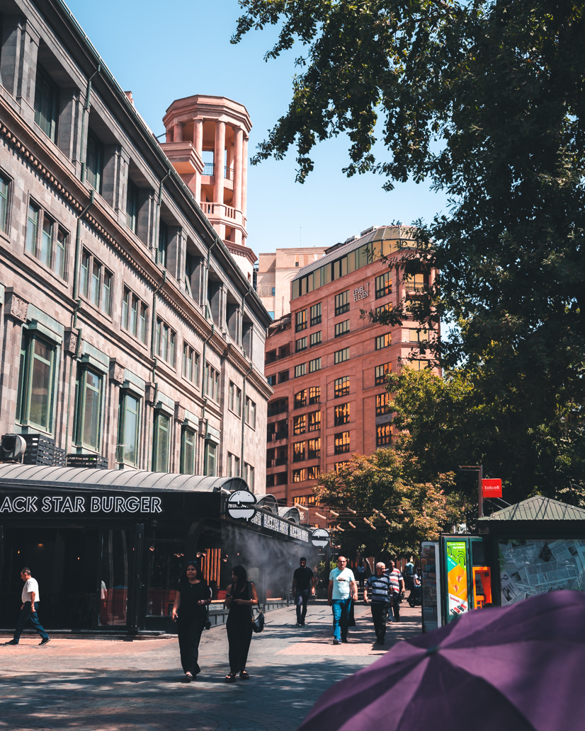 Das Zentrum Jerewans kannst du entspannt zu Fuß erkunden, auch wenn es zu jeder Tages- und Nachtzeit überall von Menschen wimmelt. Auch der Verkehr im Zentrum ist oft weit nach Mitternacht noch ziemlich belebt, die Straßen verstopft.