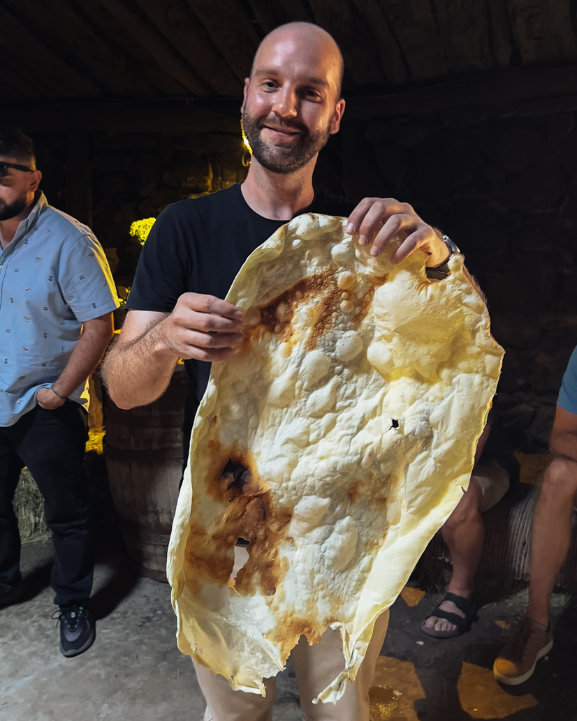 In einer Hütte direkt hinter dem Restaurant wird das traditionelle Lavash-Backen im Erdofen authentisch nachgestellt, und wer möchte, kann selbst ran. Aber obacht: Es sieht einfacher aus, als es ist ...