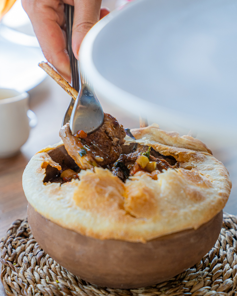 Das wunderschöne wie stylishe Restaurant wurde erst 2021 eröffnet. Hier kannst du nicht nur köstliche armenische Tapas wie Chili-Pfeffer-Dips, einen betörenden Aveluk-Salat (Sauerampfer) und Vanahash – eine Art "Käsespätzle" der Armenier, die wir auf unserer Reise lieben gelernt haben – sowie hervorragende Poutouk (Lammkoteletts) verspeisen, sondern dich auch im Lavash-Backen ausprobieren.