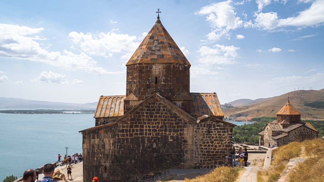 Zu sehen sind zwei Kirchen, Surb Astvatsatsin („Die Mutter Gottes“) und Surb Arakelots („Der Heilige Apostel“), dazu der wunderschöne Ausblick über den rieeesigen See – einem Meer gleich! –, auf dem man auch allerlei Aktivitäten wie Tretbootfahren oder Sub-Kraxeleien unternehmen kann.