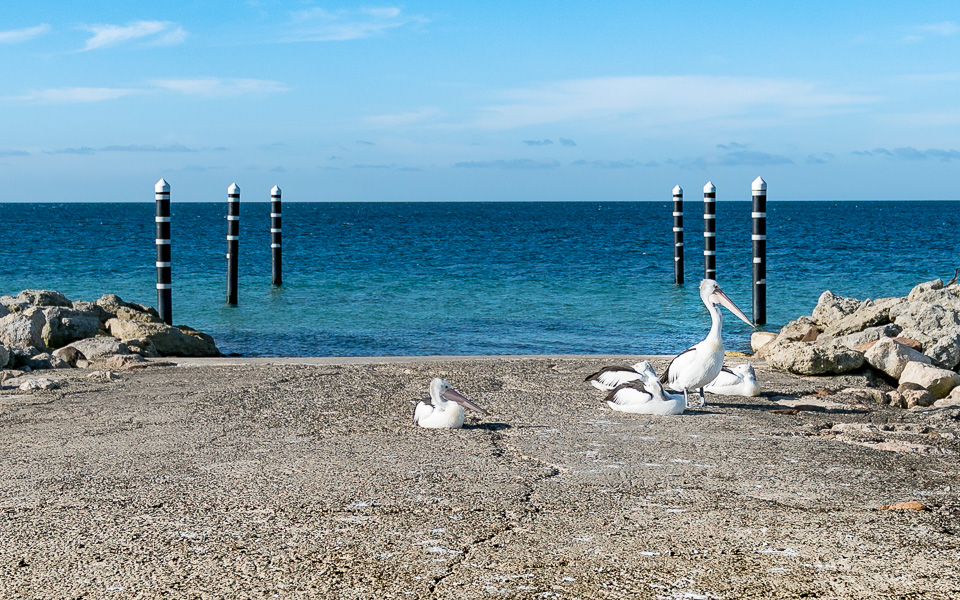 Am Ende des Tages fahren wir zur Bay of Shoals (Emu Bay), um die australischen Brillenpelikane beim Fische fangen zu beobachten. Denn hier warten die Tiere auf die Fischabfälle der Fischer und ergattern soviel Futter wie möglich.