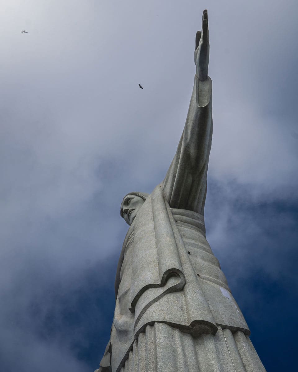 Danach ging es zum „Corcovado“, genauer gesagt: Zur Betrachtung der rieeesigen, 30 Meter hohen Erlöserstatue „Cristo Redentor“. Eine Zahnradbahn brachte uns hinauf, und wir müssen zugeben: Die schiere Größe dieser Statue ist wirklich beeindruckend.