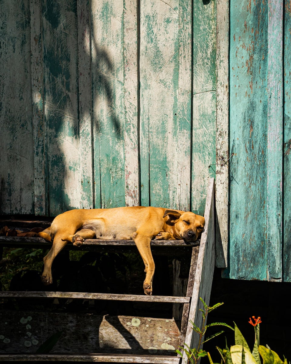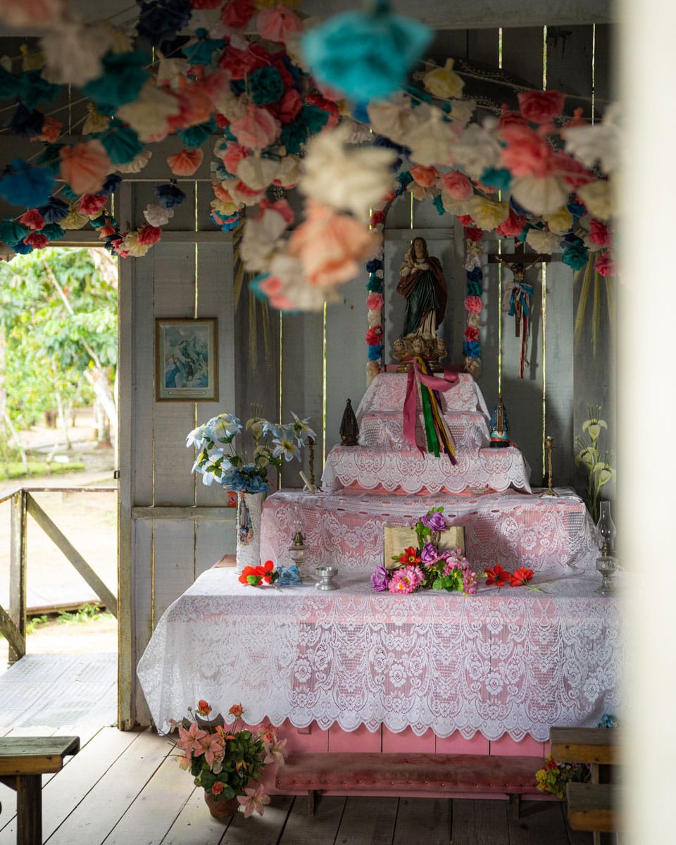 Weiter ging es zur Gemeinde „Vila de Acajatuba“, die im RDS (Rio Negro Sustainable Development Reserve) lag. Dieses kleine Dörfchen gewann regelmäßig Preise für seine Sauberkeit, und tatsächlich erspähten wir nirgendwo auch nur einen Hauch von Abfall. Die Leute hier schienen außerdem, wie eigentlich überall auf unserer Reise, ziemlich glücklich mit dem, was sie hatten – und pflegten ihr Hab und Gut entsprechend.