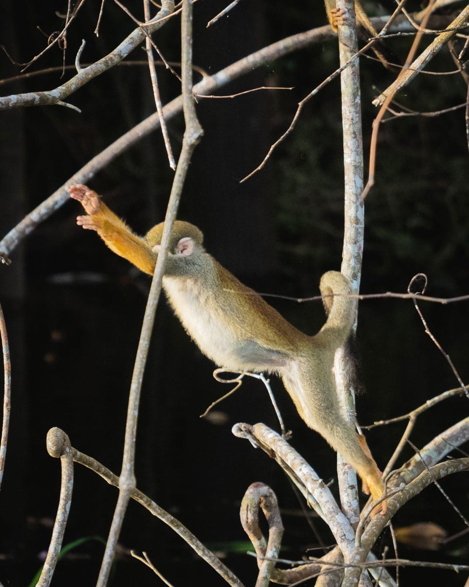 Nach dem Abendessen ging‘s erneut aufs Beiboot: Eine kleine Nacht-Safari ließ uns Eulen, kleine Kaimane, faule Faultiere, grüne Grashüpfer und nachtaktives Gefieder erspähen.
