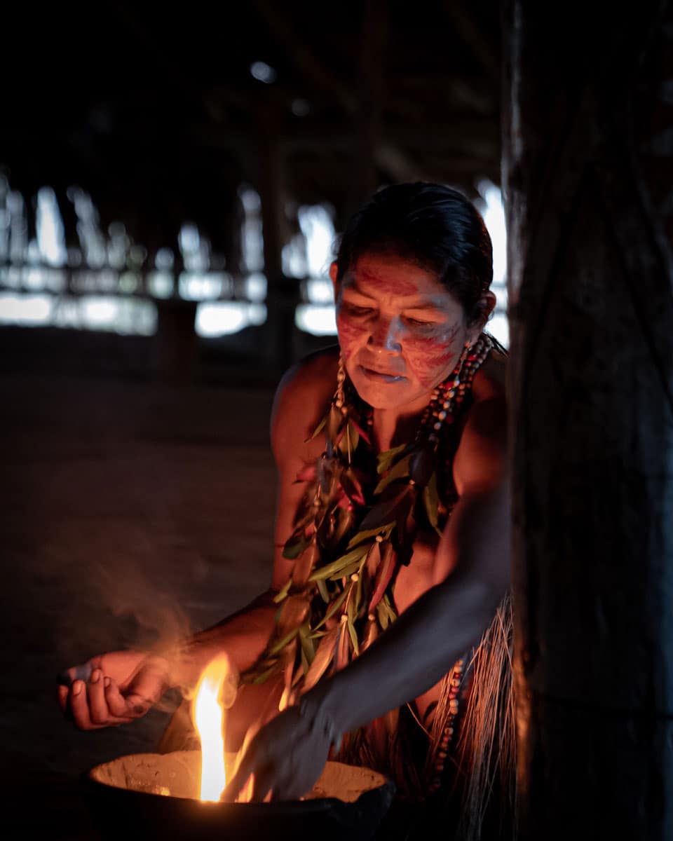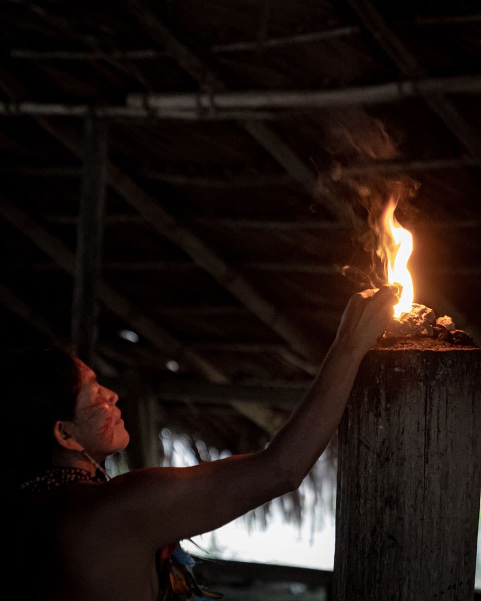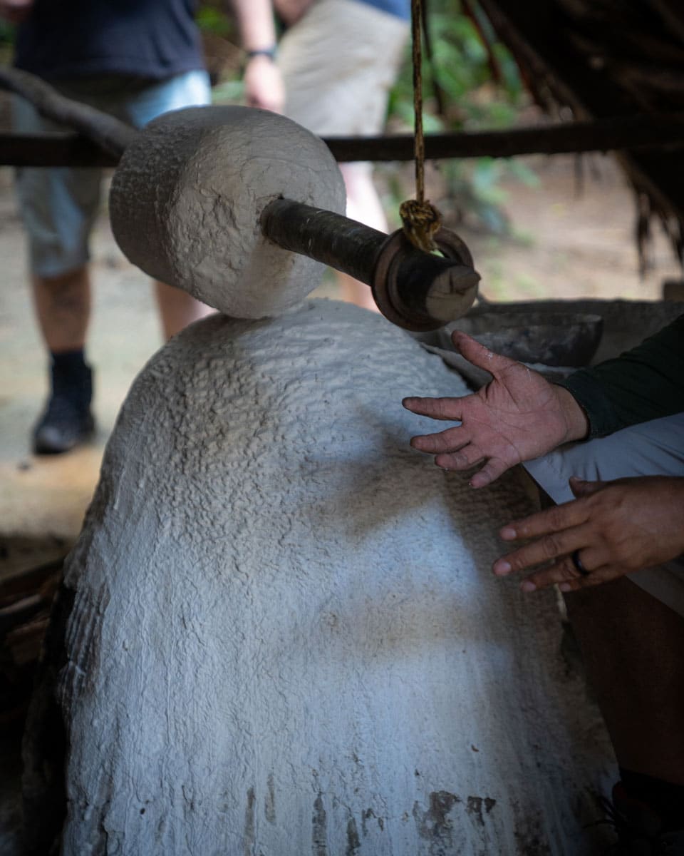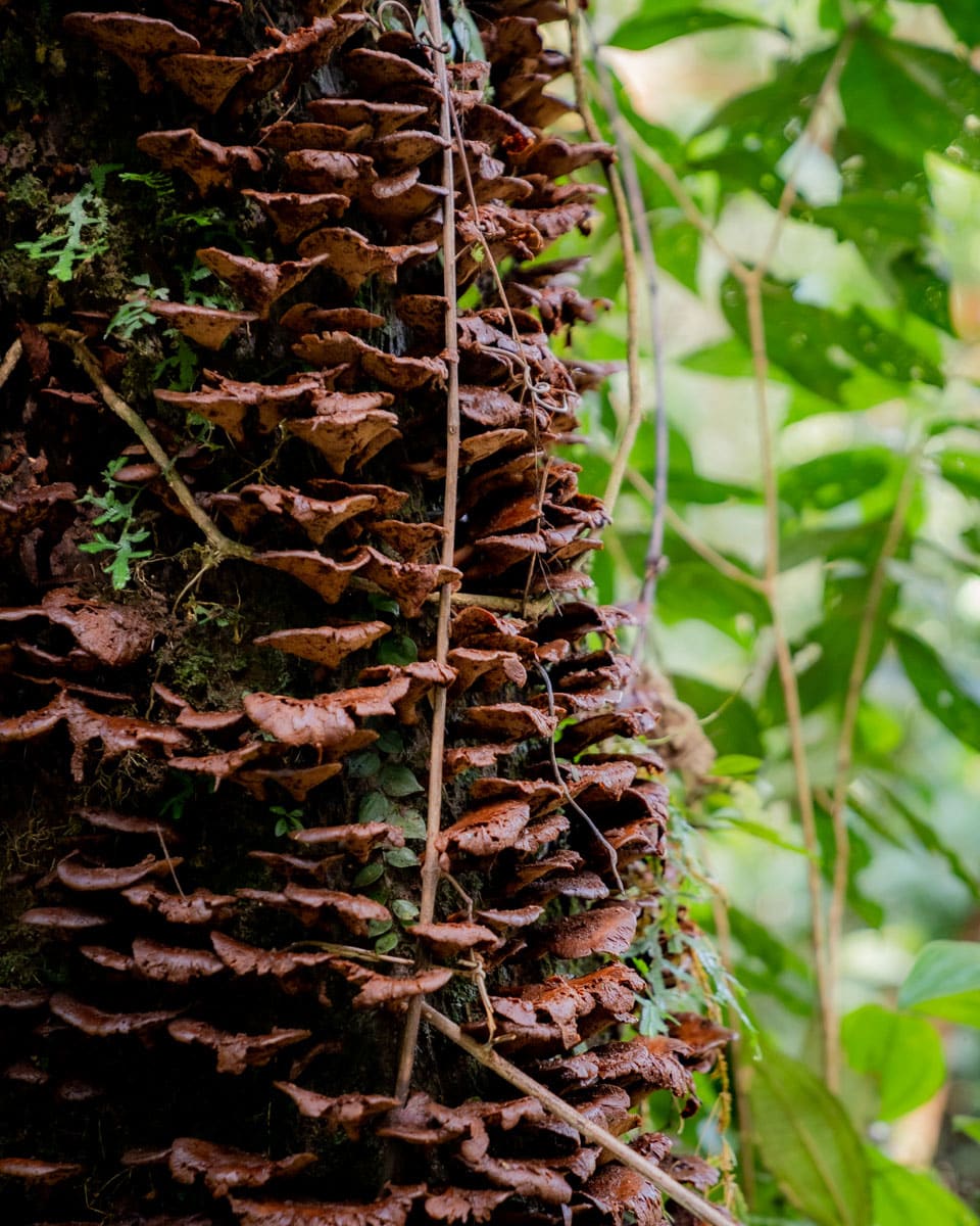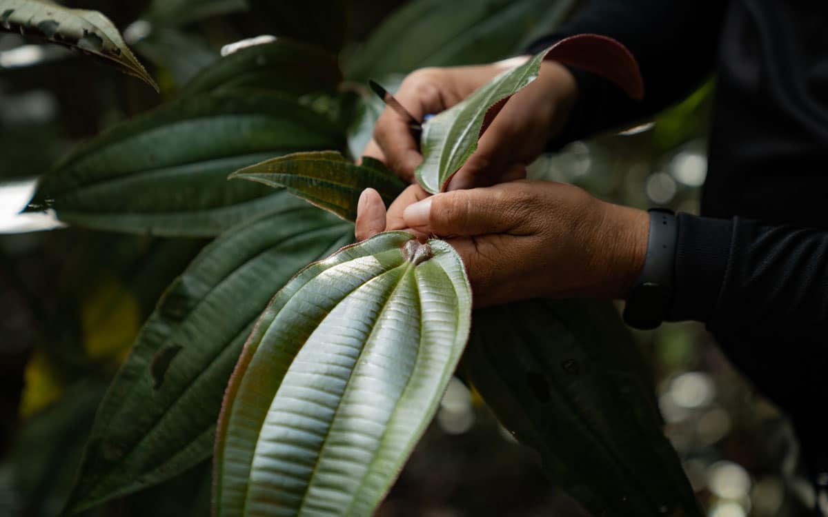 So war die Rindenflüssigkeit des einen Baumes ein super Kaugummiersatz, während ein anderer Trinkwasser spendete oder Kleidung rot färben konnte. Er zeigte uns Ameisen, deren Körperflüssigkeit nach dem Zerreiben als wohlduftender Mückenschutz fungierte. Und falls sich doch mal einen Jaguar zu dir verirren sollte, klettert man mit einer selbstgebauten Fußschlaufe auf den nächstgelegenen Baum (wenn man es denn kann).