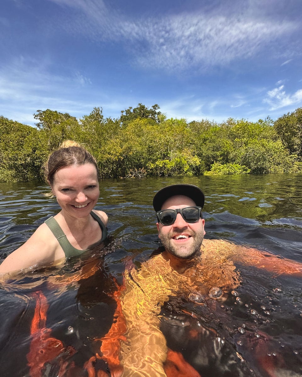 Der schwarze Rio Negro, den man von Manaus aus befährt, bietet Mücken nur wenig Nährboden für die Vermehrung, sodass wir auf dem Wasser halbwegs verschont wurden. Auf dem Rio Solimões sieht es anders aus. Daher empfehlen wir dir, ausreichend starkes Mückenspray mitzunehmen.