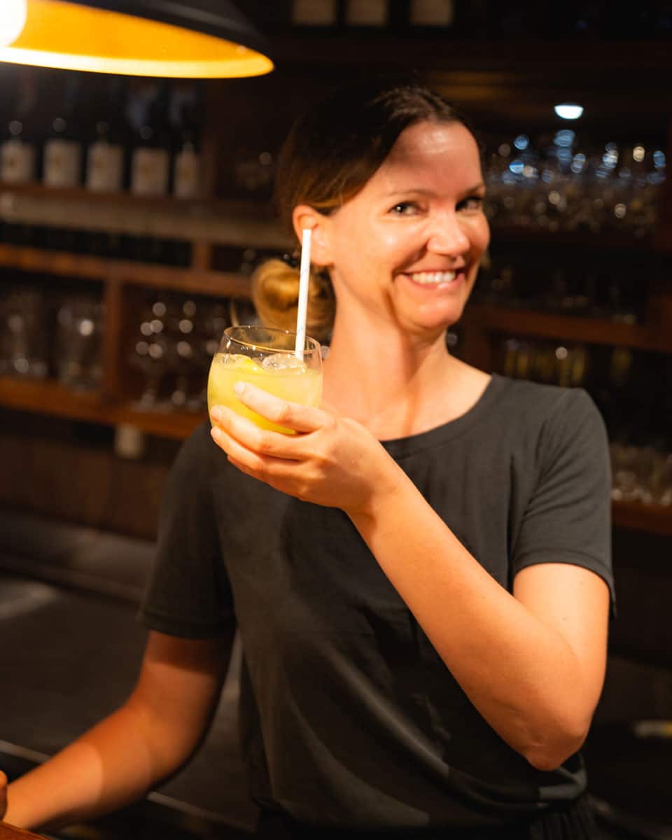 Letzter Programmpunkt vor dem Abendessen: Ein Caipirinha-Kurs. Jede/r durfte sich das brasilianische Nationalgetränk nach ihrem/seinem Gusto zurechtschütteln. Wir freundeten uns auf dieser Reise Glas für Glas mit diesem Cocktail an, den wir seit diesem Tag liebevoll „Caipiranha“ nannten.