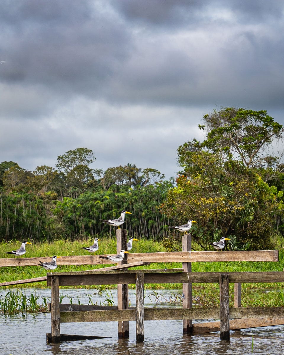 Die Tage beginnen früh auf der Jangada: Um 5:30 Uhr wurden wir wachgeklopft, um 6 Uhr gab es einen Kaffee und um 6:15 Uhr saßen wir pünktlich auf dem morgendlichen Beiboot zur Wassersafari bei Sonnenaufgang – oder besser gesagt: bei Wolken und Regen.