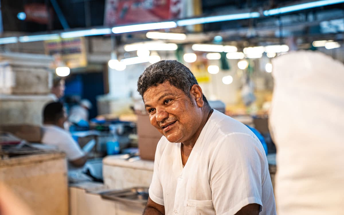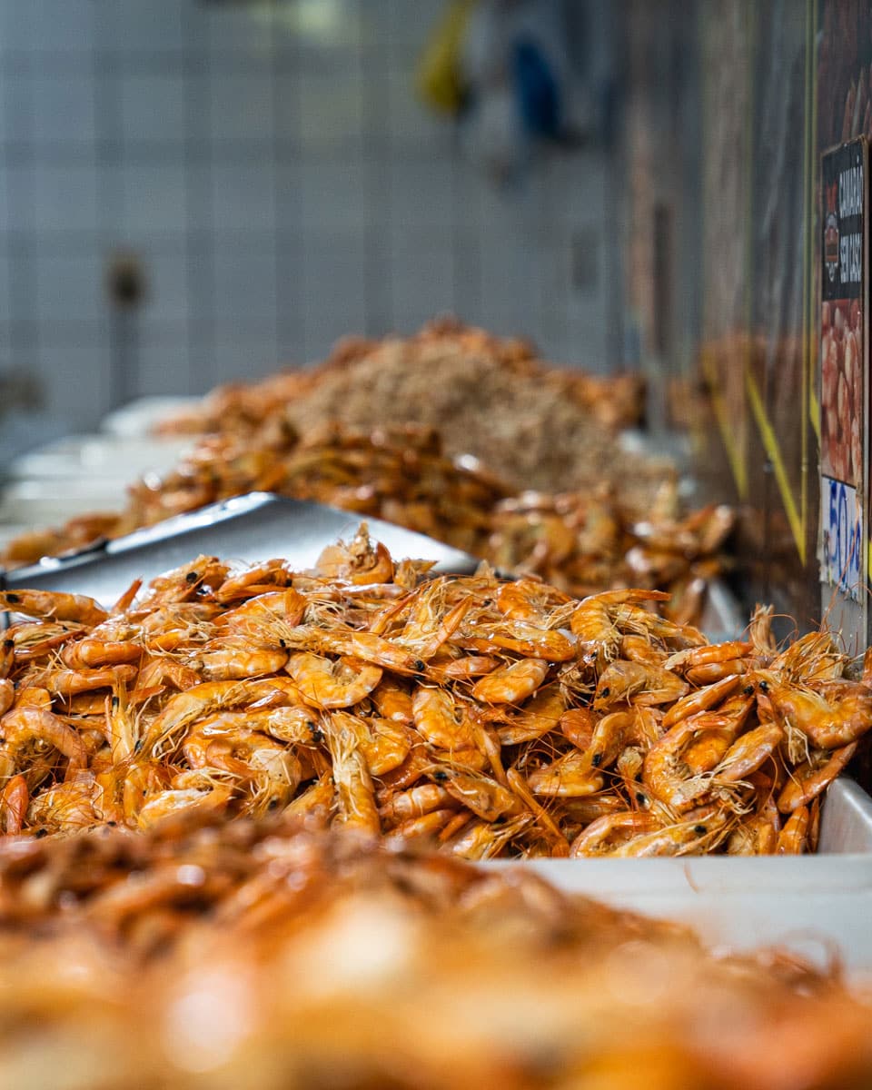 Dazu gab es köstliches „Tacacá“ – einen leicht schleimigen Eintopf mit getrockneten Salzgarnelen und einem bitteren Kraut namens „Jambu“ – sowie in süßliche Bananenscheiben gewickeltes „Caboco“. Das ist ein getrockneter Salzfisch namens „Pirarucu“ mit cremigem Käse.