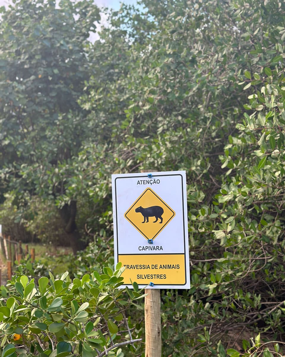 Nach einer ca. 20-minütigen Taxifahrt fanden wir sogleich, nach nur wenigen hundert Metern, ein Capybara-Schutzzonen-Schild; hier hatten die Tiere ihre Ruhe, das demonstrierte sogleich ein Prachtexemplar, das mitten in den Bäumen vor sich herdöste.
