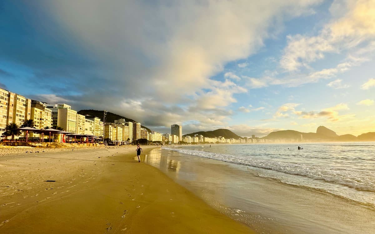 Wer sportlich ist, gönnt sich gleich bei Sonnenaufgang eine ausgiebige Joggingrunde auf der Copacabana, die nach etwa vier Kilometern zum nicht minder renommierten Strandabschnitt Ipanema wechselt.