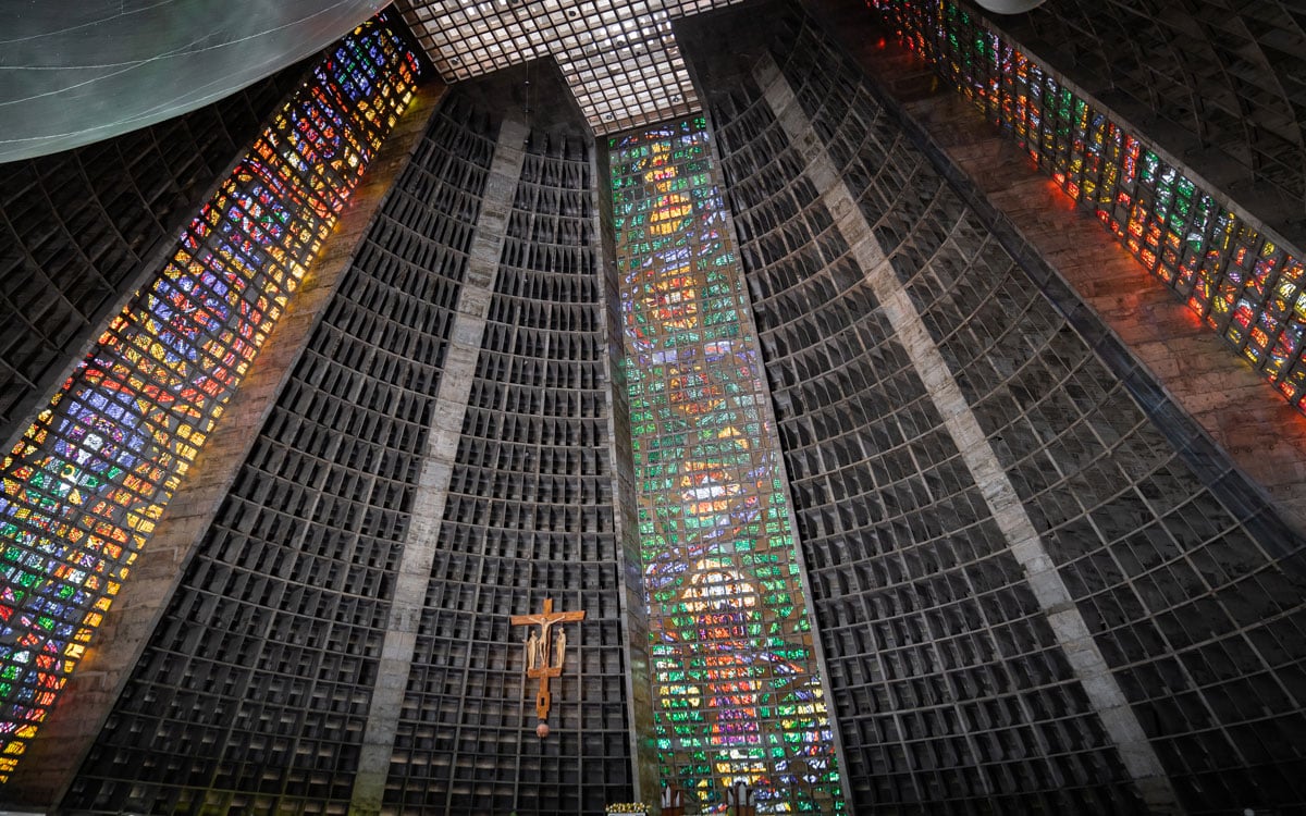 Wieder hinab ging es mit dem Bus auf zu einer kurzen Stadtrundfahrt. Wir sahen die riesengroße, bunkerartige „Catedral Metropolitana de São Sebastião de Rio de Janeiro“, gebaut 1979 und von Edgar Fonseca architektonisch im Stile des Modernismus entworfen. Abgefahren!