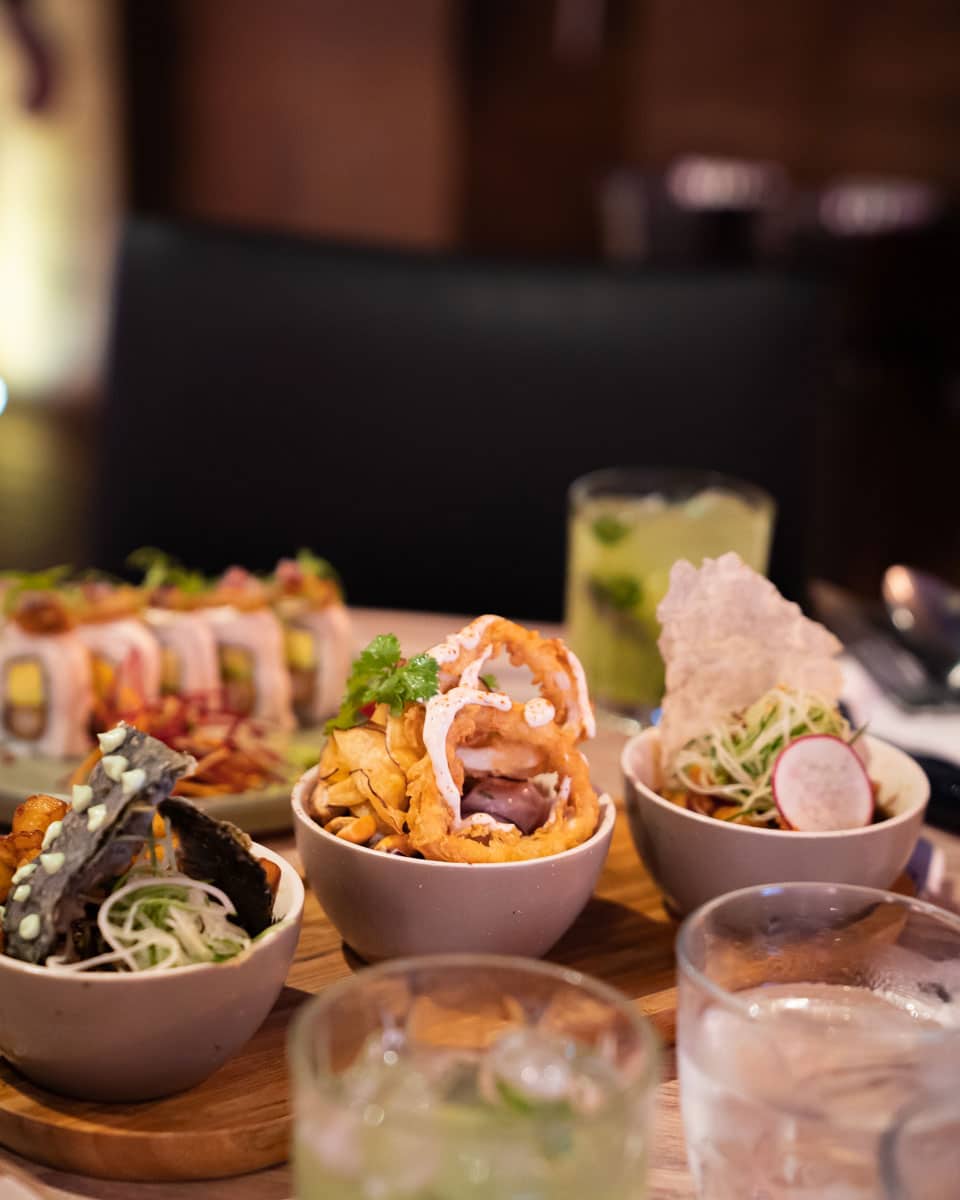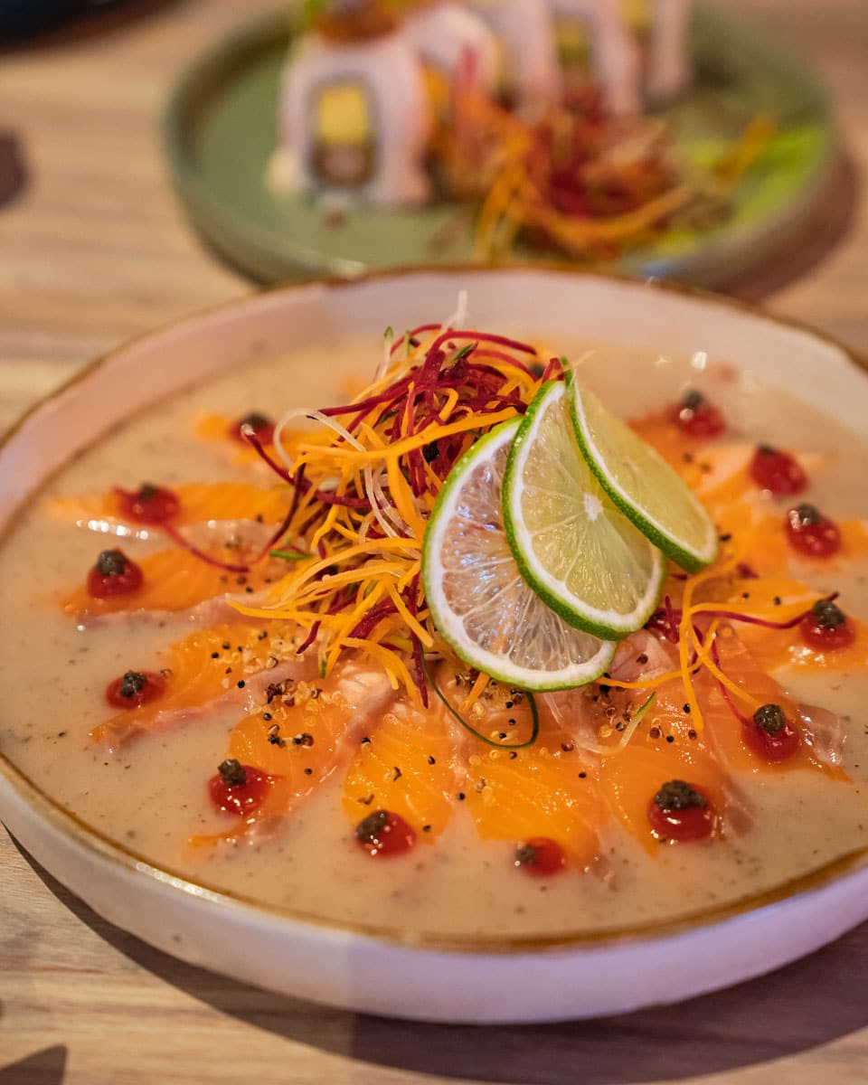 Gleich beim Hotel – vom Balkon aus entdeckt – lag das Restaurant „Kinjo“ (was so viel wie "Nachbarschaft" bedeutet), das in Europa nahezu unauffindbare japanisch-peruanische „Nikkei“-Küche bot. Das Essen: Lachs mit Yuzu-Trüffelsauce, ein Dreierlei von der Ceviche sowie „Acevichado“, eine Maki-Rollenkreation die symbolisch für die symbiotische Küche aus Japan und Peru stand und die wir bereits auf anderen Südamerikareisen mit Freude vertilgten.