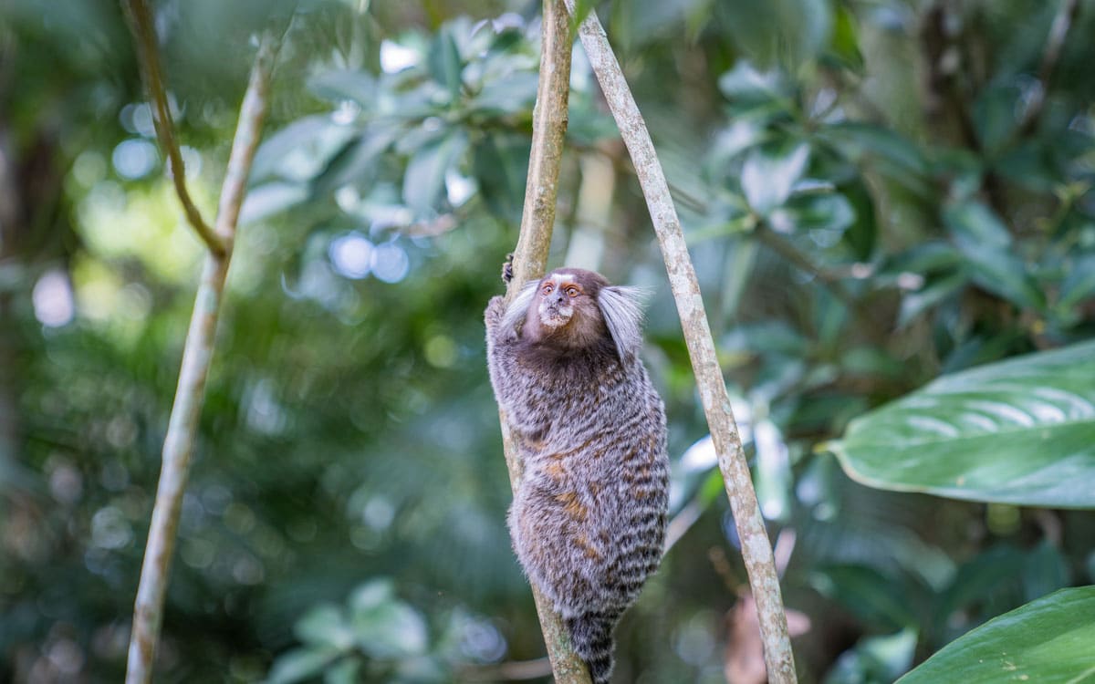 Im oberen Teil des Zuckerhuts fanden wir ein klein wenig Pause vom Menschentrubel in einem kleinen Dschungelrundweg. Hier tummelten sich zahlreiche, erstaunlich niedliche „Pinseläffchen“, oder auch „Weißpuscheläffchen“ (weil ihnen weiße Puschelhaare aus den Öhrchen wachsen).