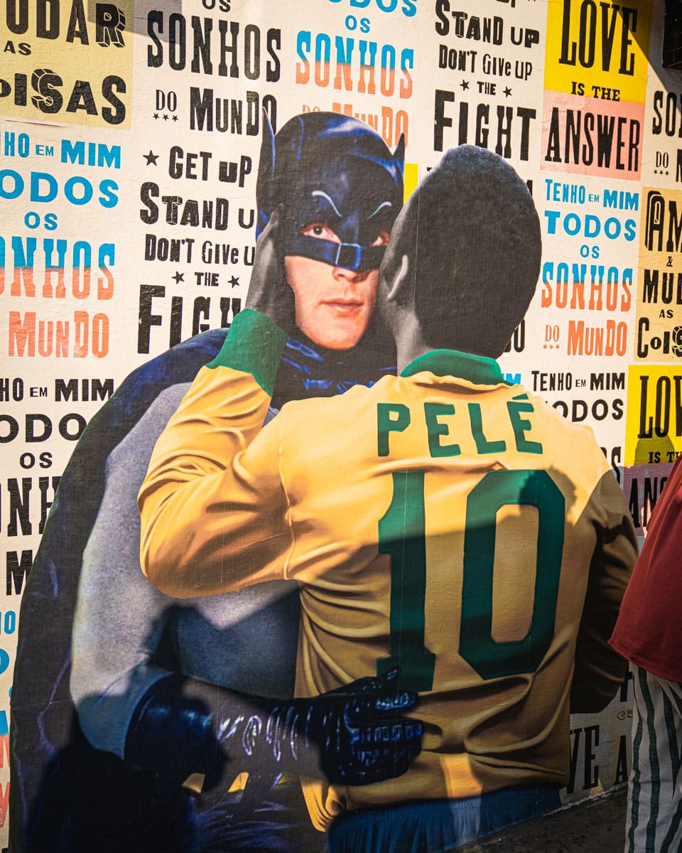 Danach besuchten wir die berühmte „Beco do Batman“, die „Batman‘s Alley". Hier pulsierte es gewaltig zwischen Bars, Street Art und ausgelassenen Menschen, eine sorgenlose Stimmung zwischen Touristen und Einheimischen, Familien und Party-Peoplez. Wir genehmigten uns einen Drink in einer netten Open-Air-Bar, quatschten mit einem Künstler, der Abziehtattoos verkaufte und sahen, wie sich eine Coverband an AC/DC versuchte.