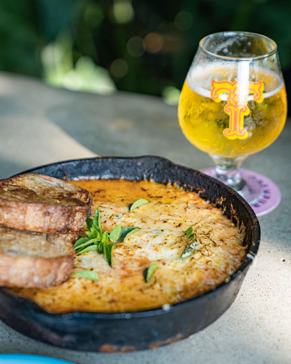 Auf dem Rückweg in unser Viertel stoppten wir im Tank Brewpub, einer lokalen Bierbrauerei. Hier gibt's zahlreiche Bierkreationen und Bar Food, zum Beispiel ein üppiges Pfännchen, dessen Inhalt als „Eier-Shakshuka“ mit Käse bezeichnet werden könnte. Ideal zum nachmittäglichen Snack im hübschen Außenbereich.