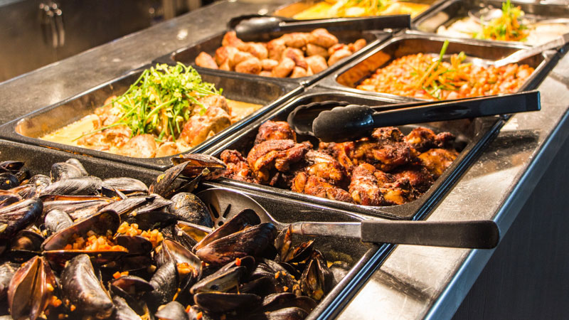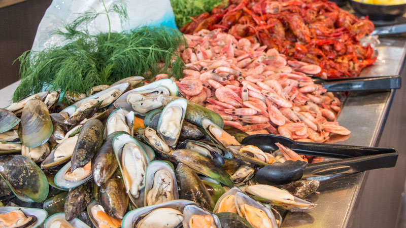 Zum Abendessen geht es ins 7 Seas Restaurant, dem Buffet Restaurant der Crown. Es gibt vorrangig eins: frische Meeresfrüchte. Fisch, Muscheln, Garnelen... ein Traum für mich. Fleischgerichte kommen ebenfalls nicht zu kurz. Für Vegetarier gibt es reichlich Salat, Pasta, Gemüse und Käse.