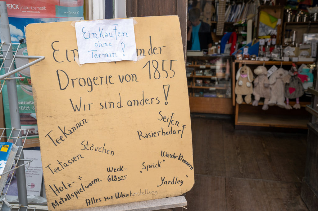 Mein besonderer Tipp für die Altstadt in Aurich ist die Drogerie Maaß am Ende der Fußgängerzone. Ein richtig toller Laden wie es sie früher so oft gab. Hier findest du alles für den Haushalt. Hinweis: Bitte besuche den Laden nicht nur, um Fotos zu machen. Kaufe auch etwas ein, damit diese Art Läden nicht ausstirbt. Ich habe mein Emaille-Service im Camper hier nochmals gefunden. So schön!