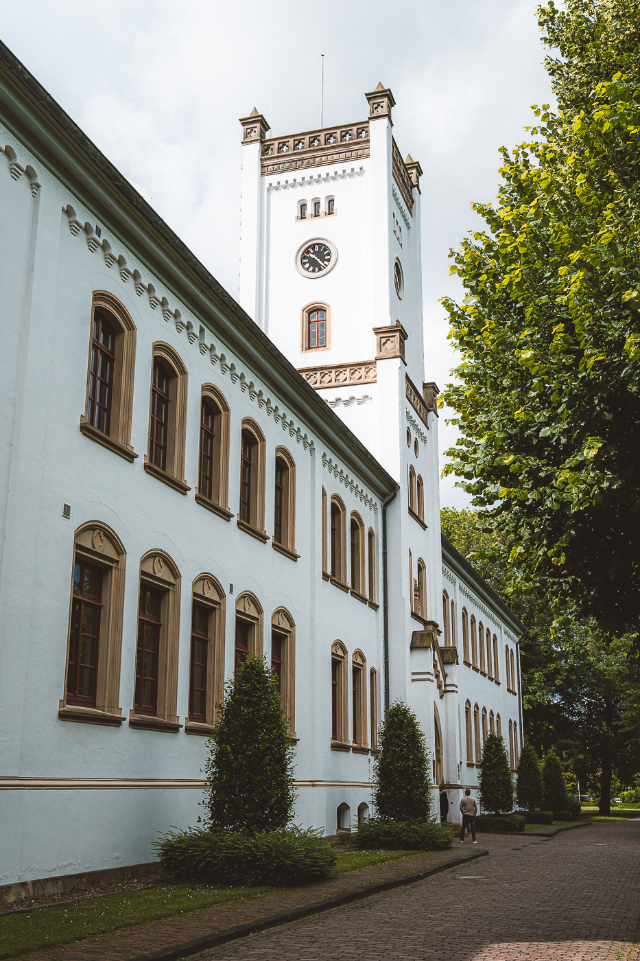 Beginne deinen Besuch am besten mit dem Auricher Schloss. Es liegt direkt am Anfang der Fußgängerzone der Innenstadt. Ehe das Schloss in Aurich erbaut wurde, stand genau an derselben Stelle eine Burg der ostfriesischen Grafen- und Fürstenfamilie Cirksena. Von 1565 bis 1744 residierten hier die Grafen und Fürsten Ostfrieslands. Die Burg wurde im 19. Jahrhundert durch König Georg V. von Hannover abgerissen und an deren Stelle 1855 das Auricher Schloss im englischen Tudorstil erbaut.