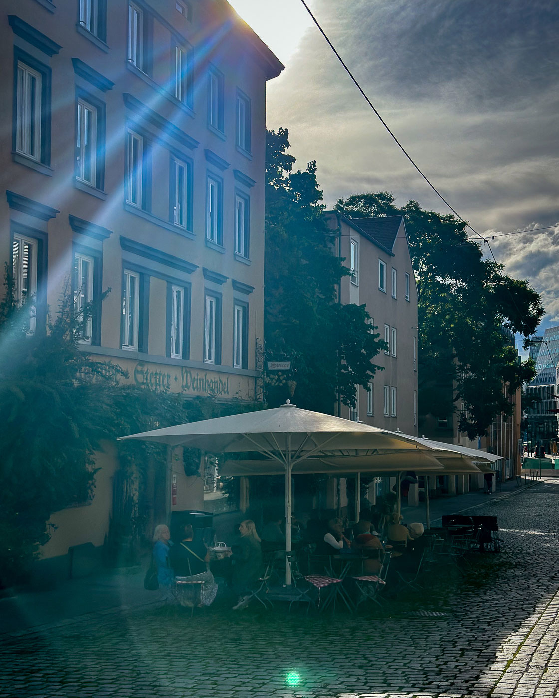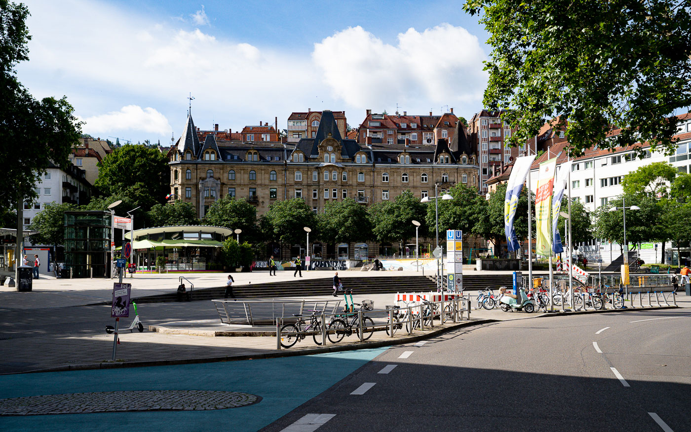 Meine Route startet im Heusteigviertel – hier liegt mein Hotel, „Das Edith“ – über die Tübinger Straße mit vielen Eisdielen und Bäckereien (zum Beispiel das seit 1910 in alter Tradition Backwaren herstellende „Weible“), die zum Frühstück einladen, bis zum Marienplatz.