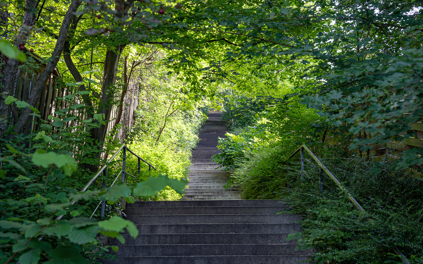 Zurück am Marienplatz geht es über einige „Stäffele“ – so nennt der Stuttgarter eigentlich alles, was einer Treppe ähnelt – hinauf zur Karlshöhe. Auch in dieser gepflegten Parkanlage hat man einen wunderbaren Blick auf die Stadt, während man sich im Biergarten ein Kaltgetränk gönnen kann.