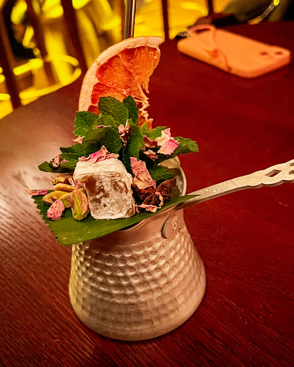 Aktuell sprechen alle nur über eine Bar: Bellboy Berlin. Hier musst du hin, allerdings musst im Voraus einen Tisch reservieren. An Wochenenden aktuell bis zu mehrere Wochen davor. Wir waren unter der Woche hier und hatten Glück. Der Eingang neben dem Hilton Hotel am Gendarmenmarkt ist leicht versteckt und unscheinbar. Alle sind im 20-er Jahre-Outfit gekleidet, die Cocktails kommen in besonderen Gefäßen. Dazu gibt es Gerichte der aromareichen Fushionküche, die besonders lecker sind.