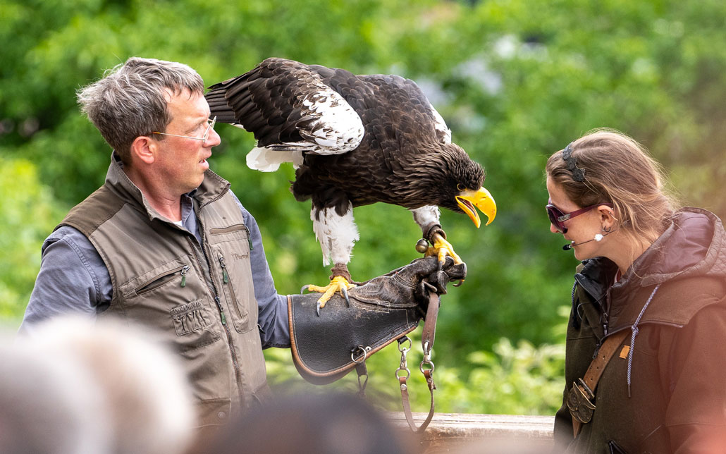 Die Burg ist ein unvergleichlicher Ort für alle. Vor allem Kinder lieben die Flugshows, wenn die riesigen Vögel mit teils über zwei Metern Spannweite dicht über die Köpfe schweben oder sogar direkt vor (oder auf) einem landen.
